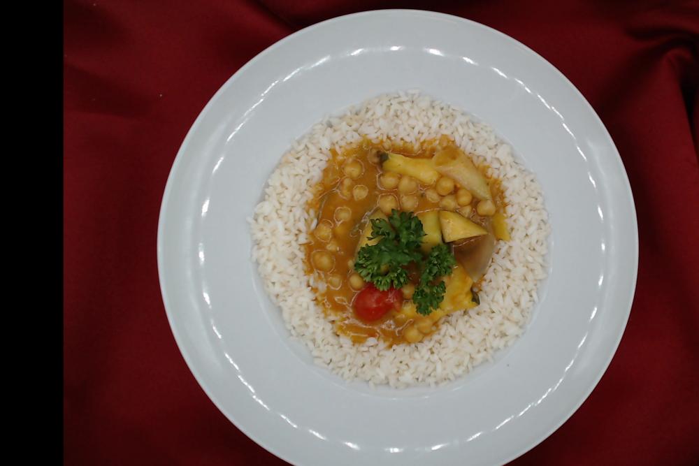Cizrnové kari se zeleninou a jasmínová rýží