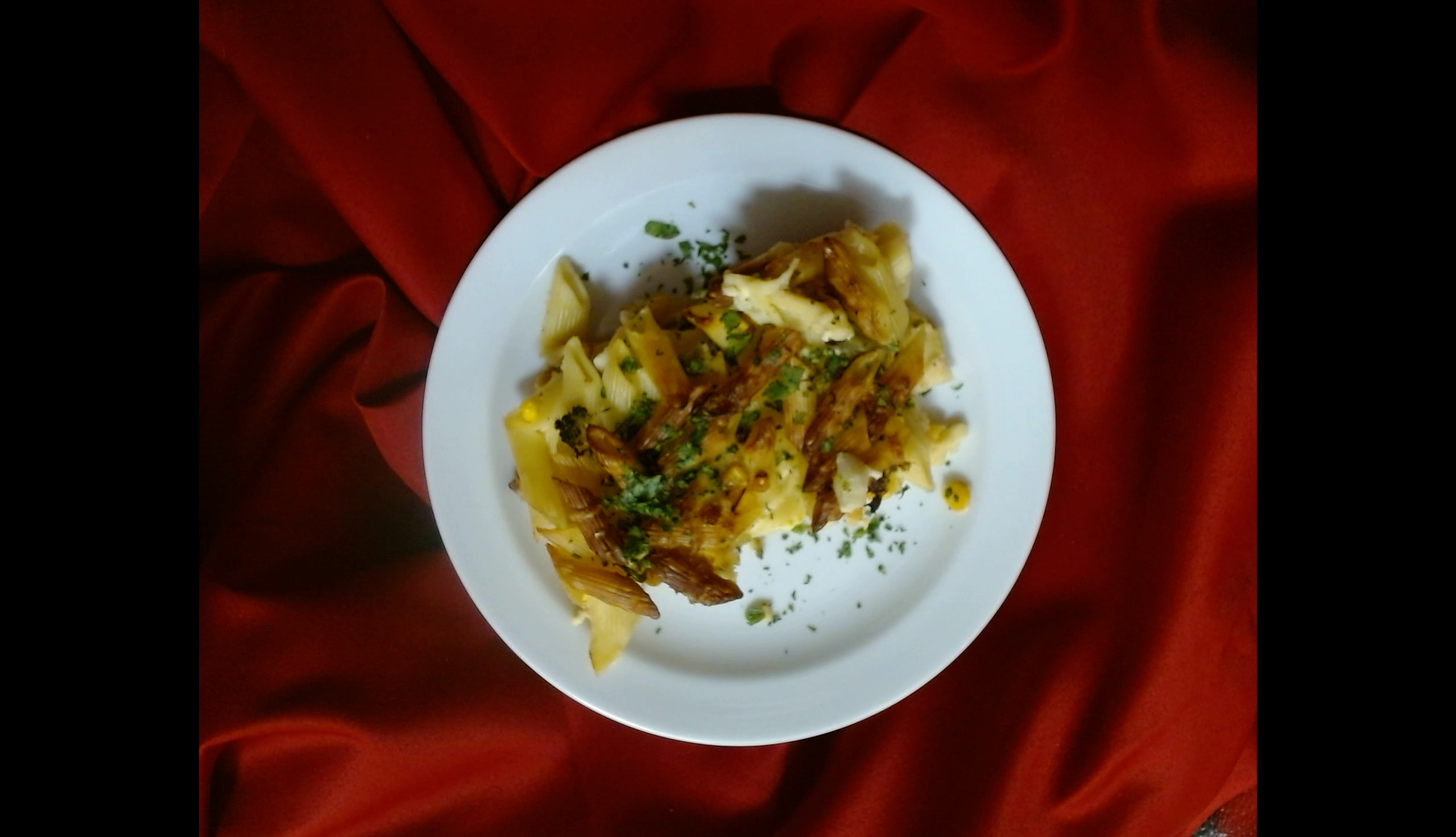 Těstoviny zapečené s brokolicí, kukuřicí a sýrem