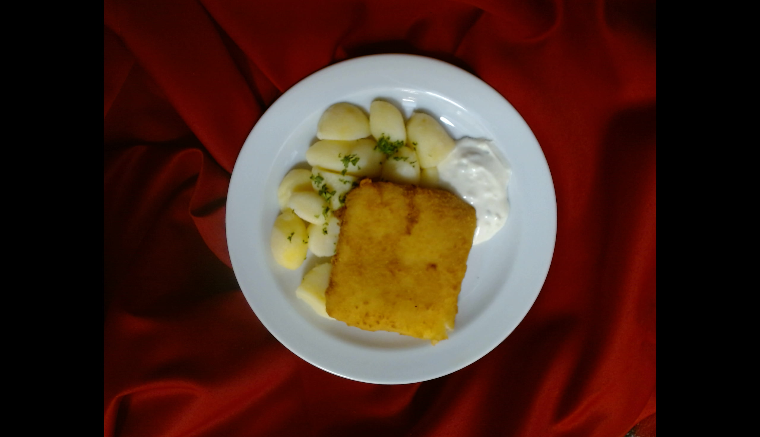 Smažený sýr gouda, vařené brambory, tatarská omáčka