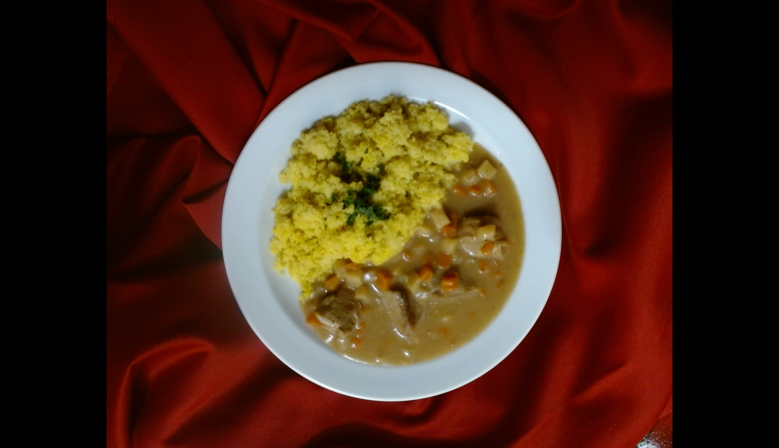 Vepřové kostky na kořenové zelenině, kuskus