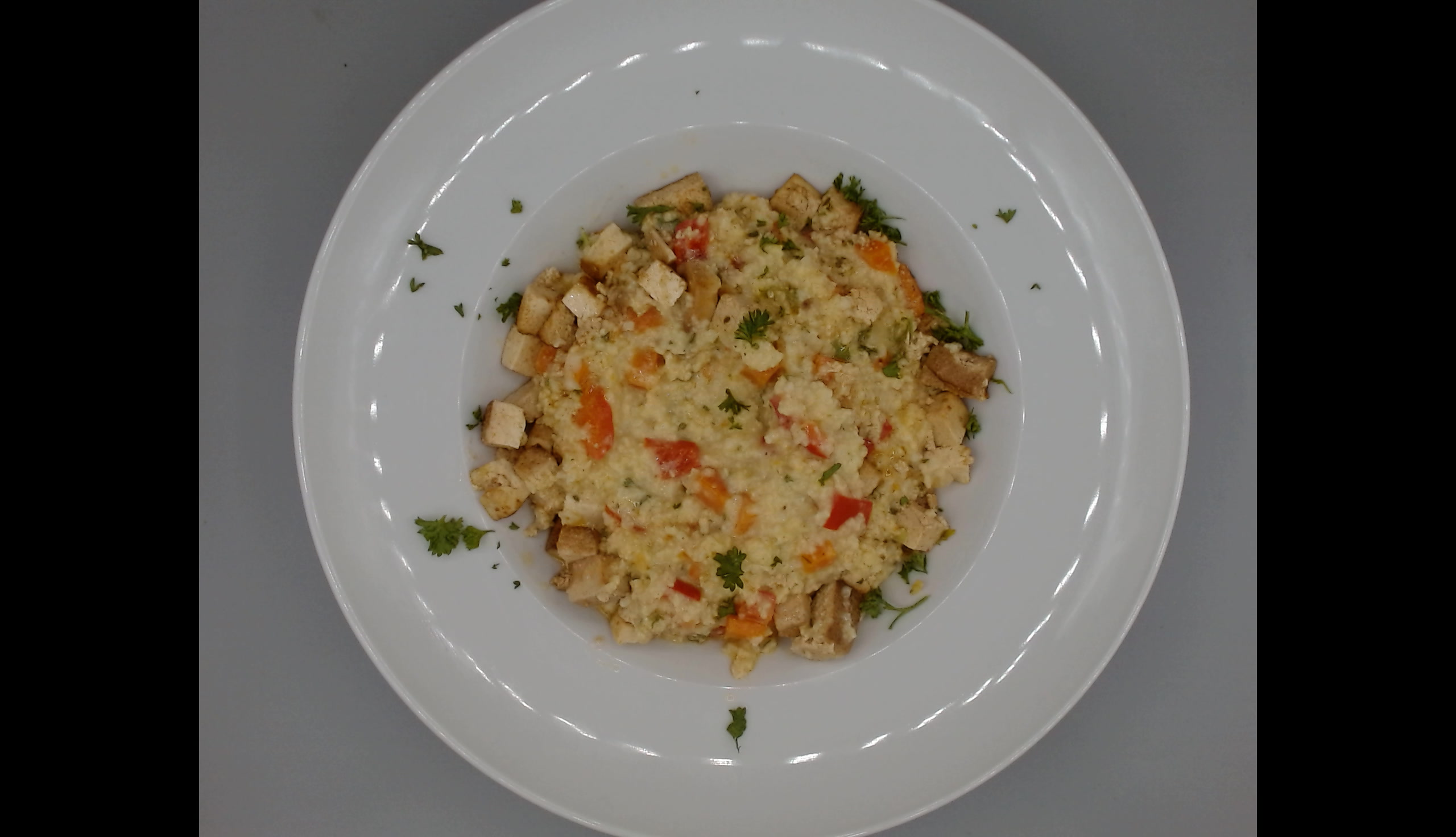 Jáhlové rizoto s marinovaným tofu a krémovou omáčkou