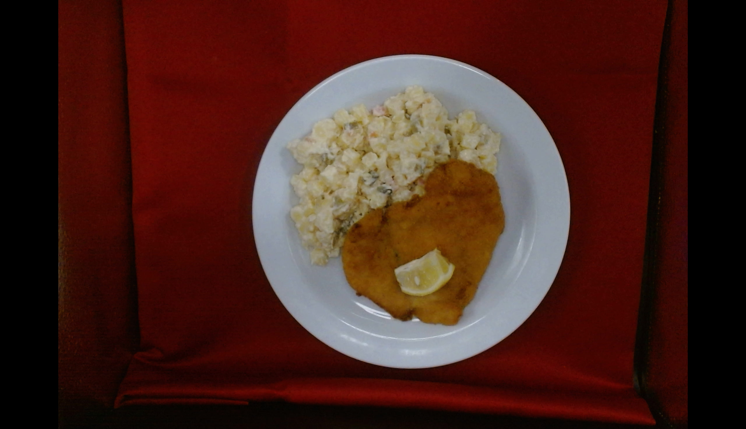 Smažený kuřecí řízek, citrón, bramborový salát