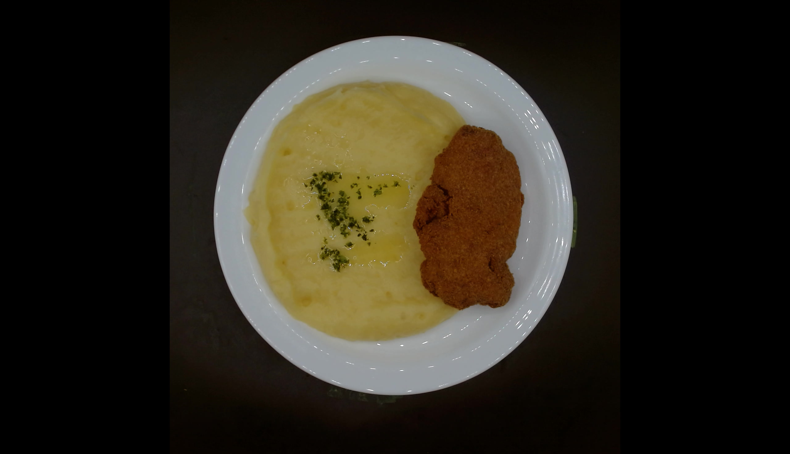 Smažený holandský řízek (vepřové maso, sýr), bramborová kaše