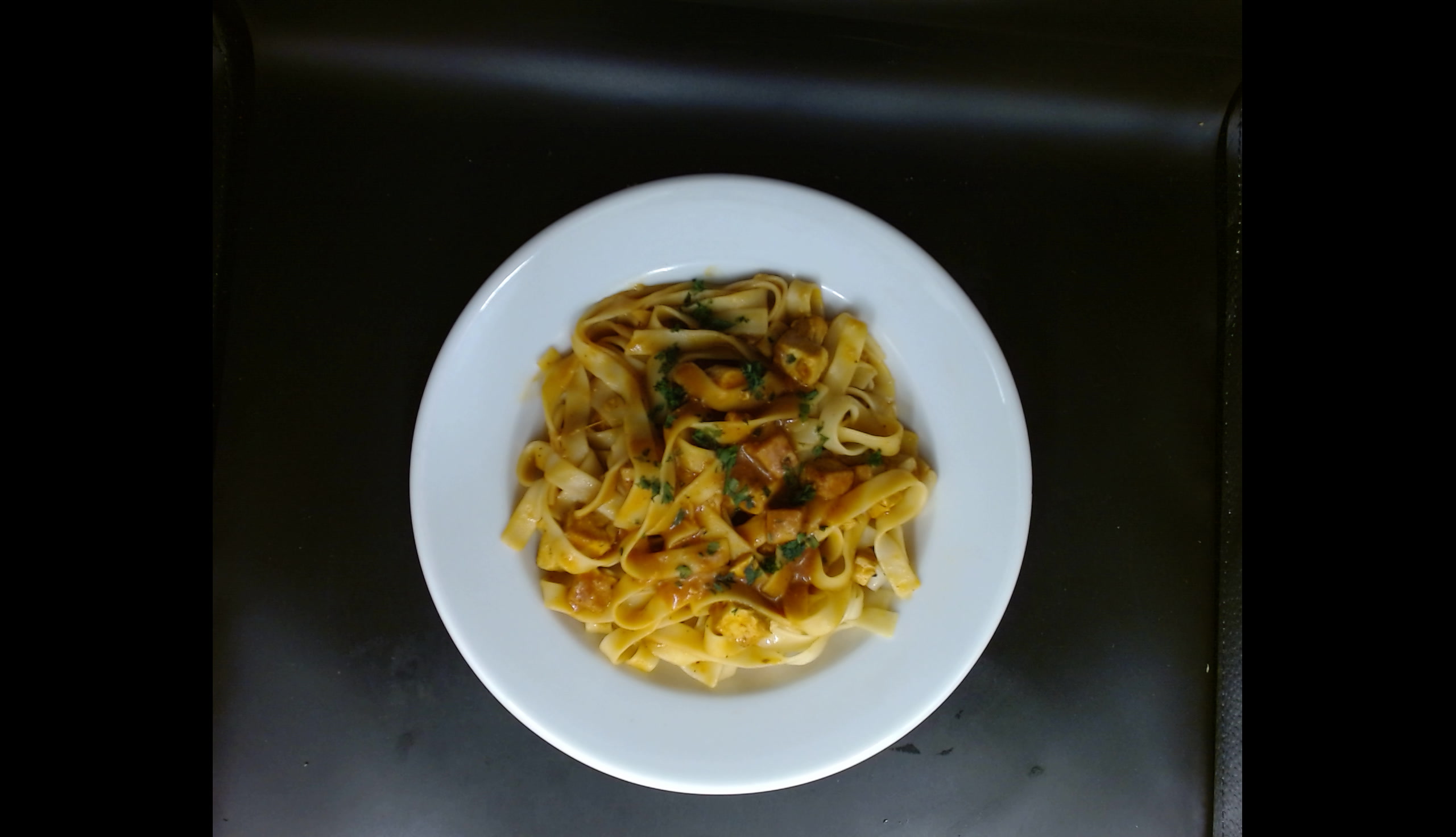 Tagliatelle na kari s kokosovým mlékem a tofu