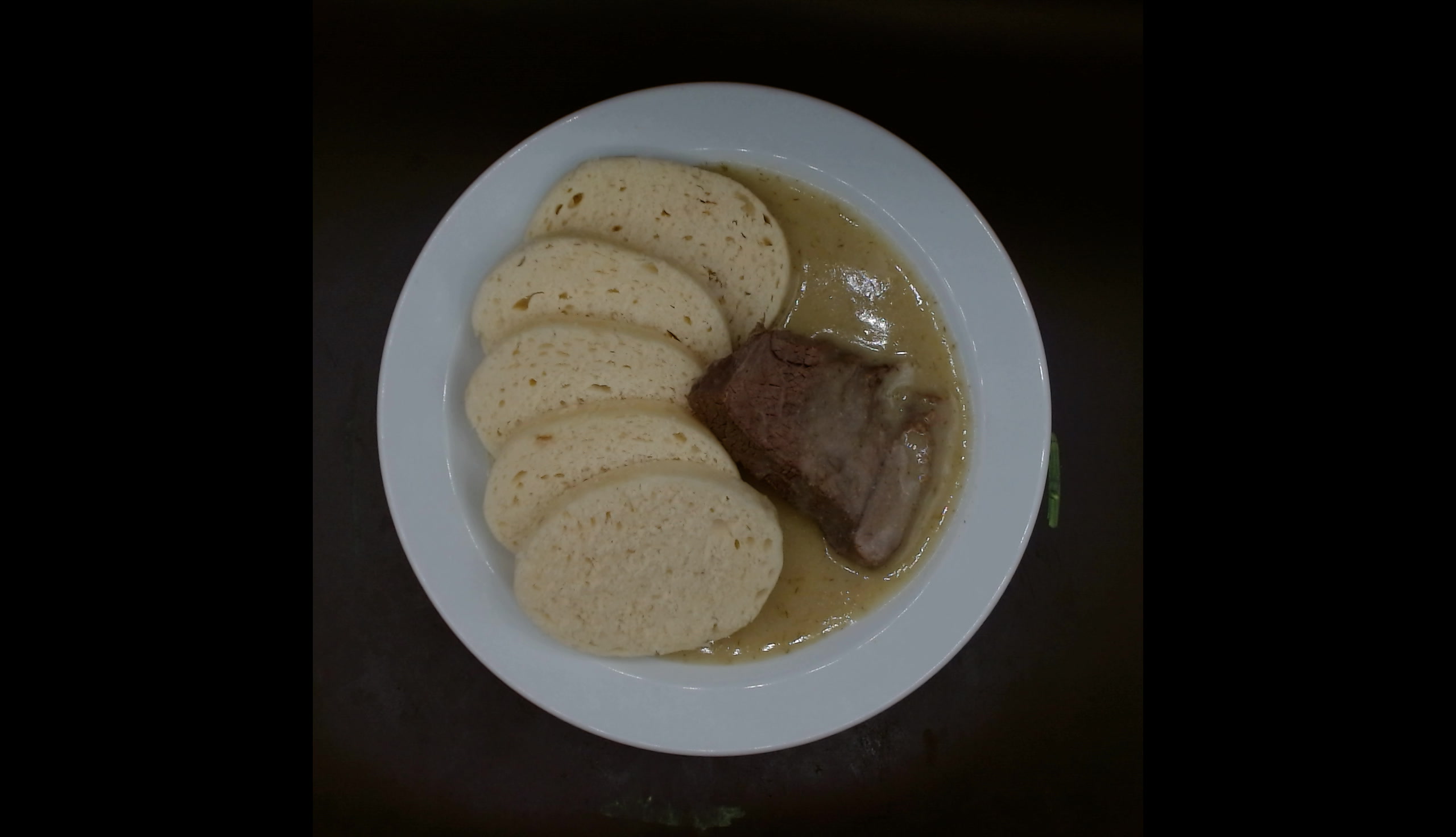 Hovězí maso s koprovou omáčkou, houskové knedlíky