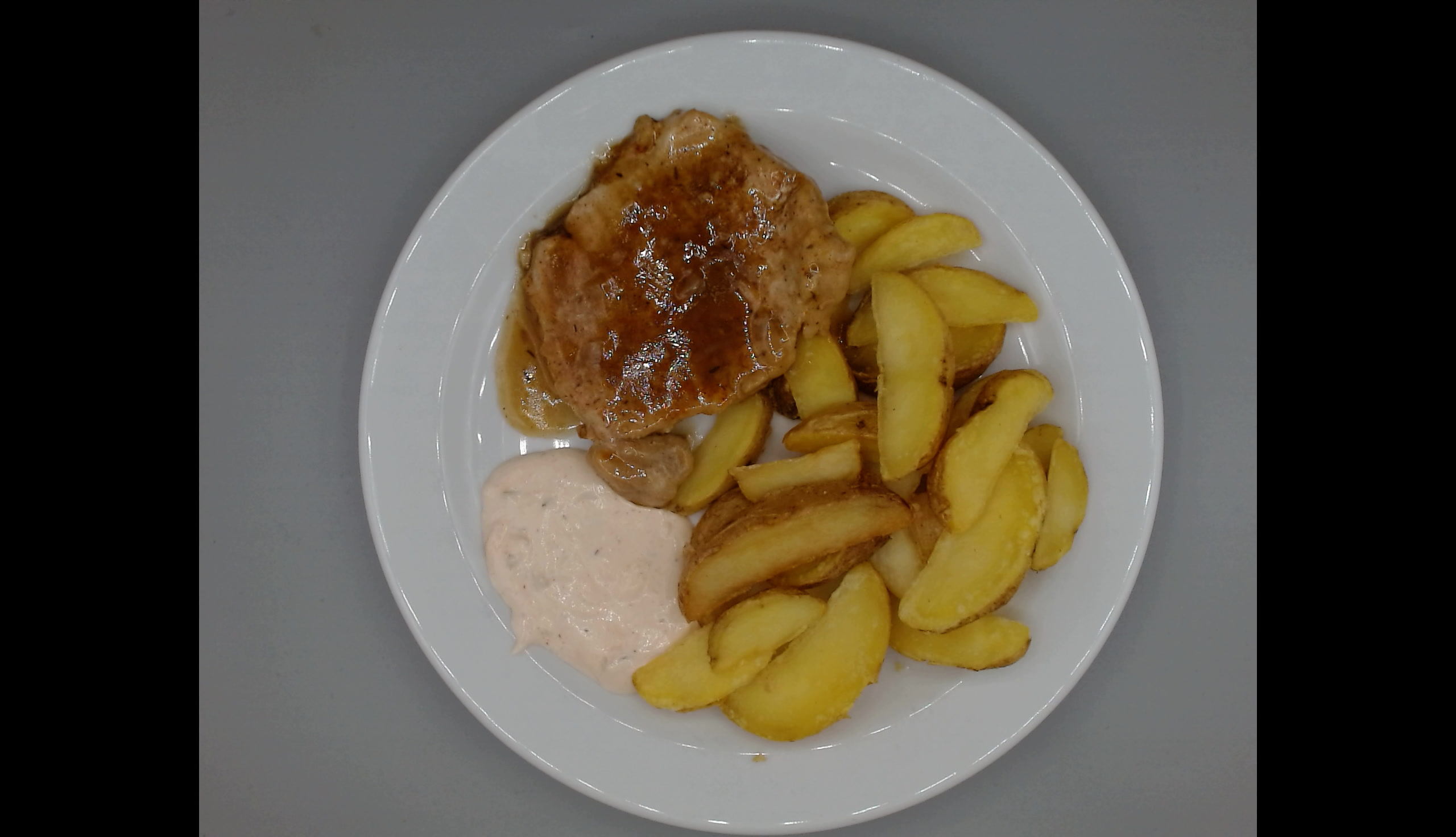 Vepřová kotleta na grilu, dip, americké brambory