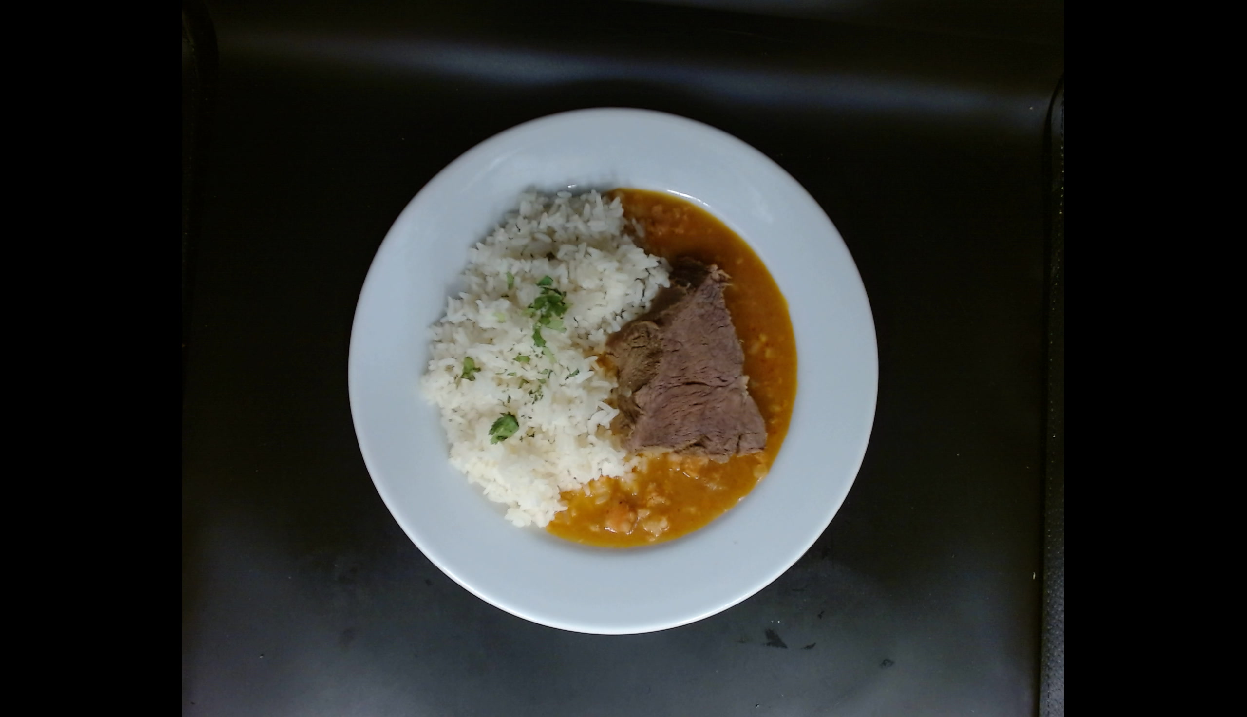 Hovězí pečeně frankfurtská (párek), dušená rýže