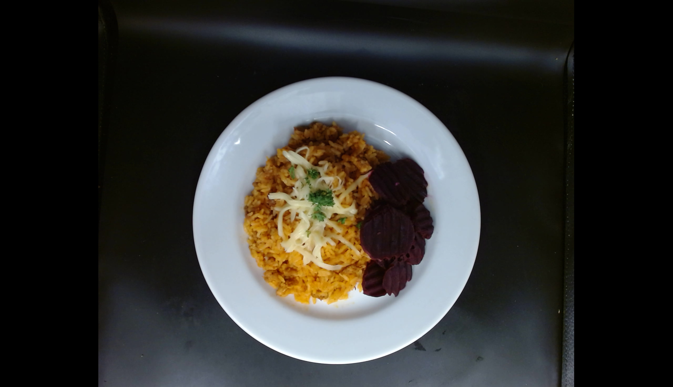 Srbské vepřové rizoto sypané sýrem, červená řepa sterilovaná