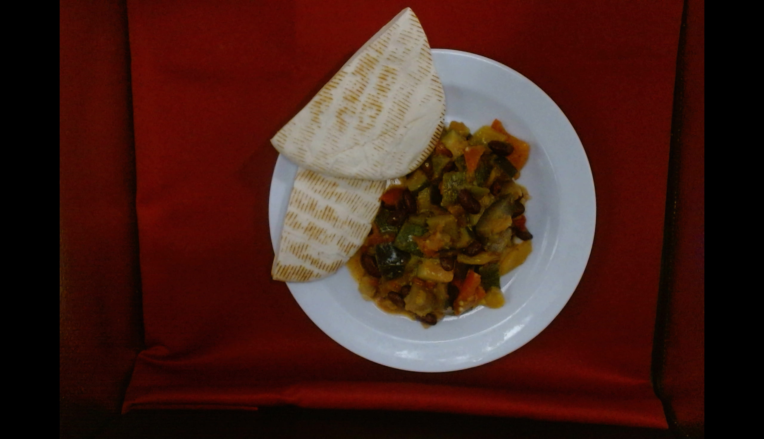 Ratatouille s červenými fazolemi, pitta chléb