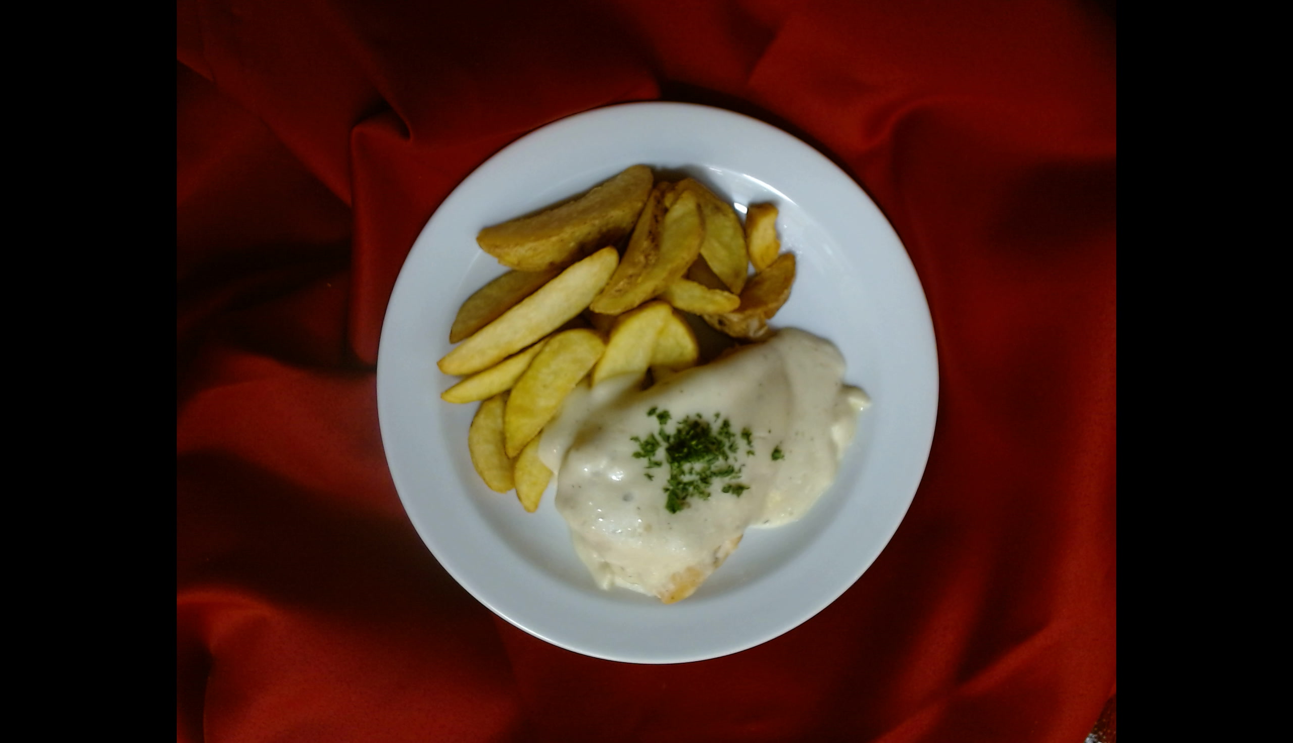 Kuřecí steak s omáčkou Quattro Formaggi, americké brambory