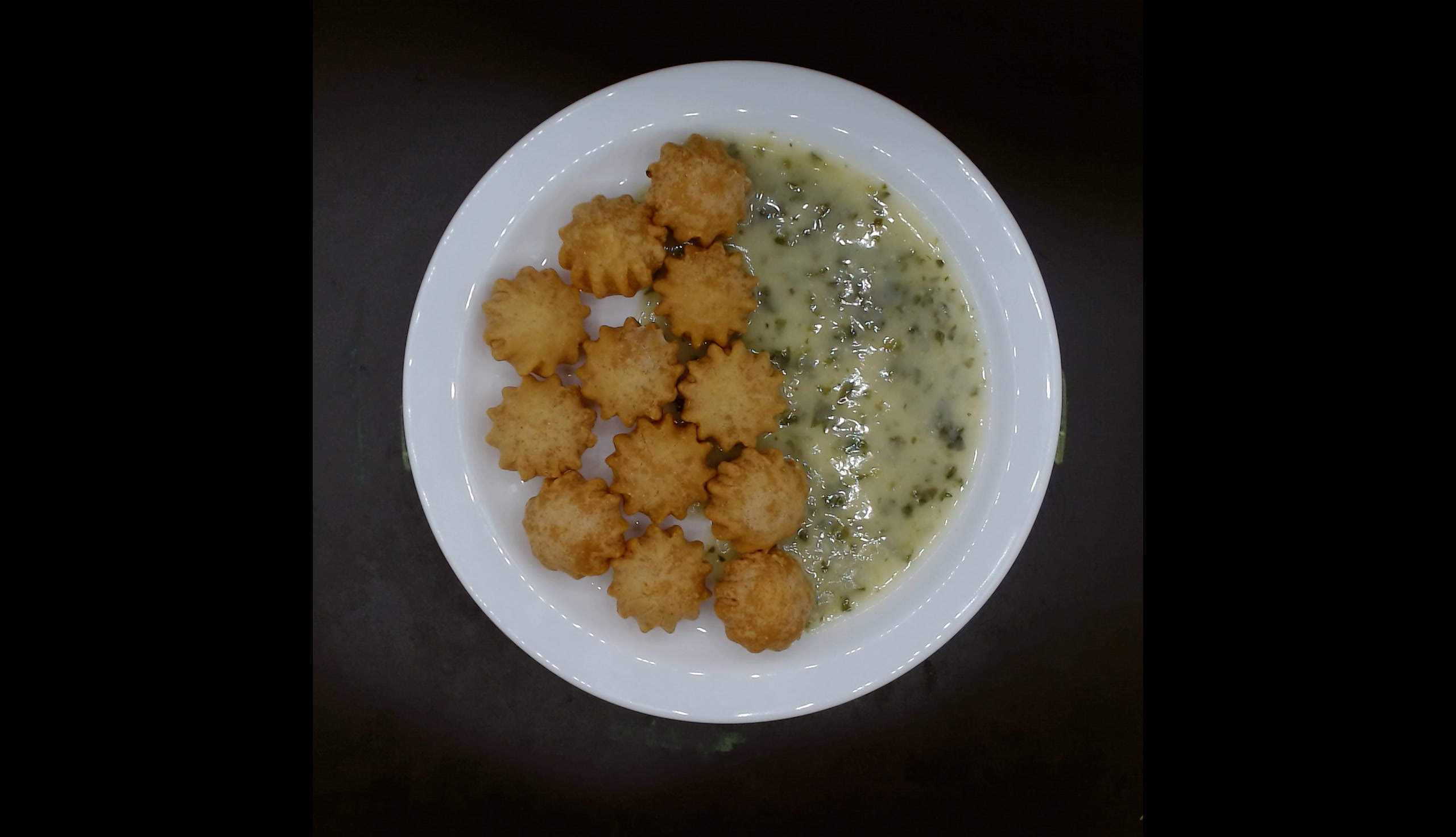 Cizrnové měšce se sýrem a špenátovým přelivem