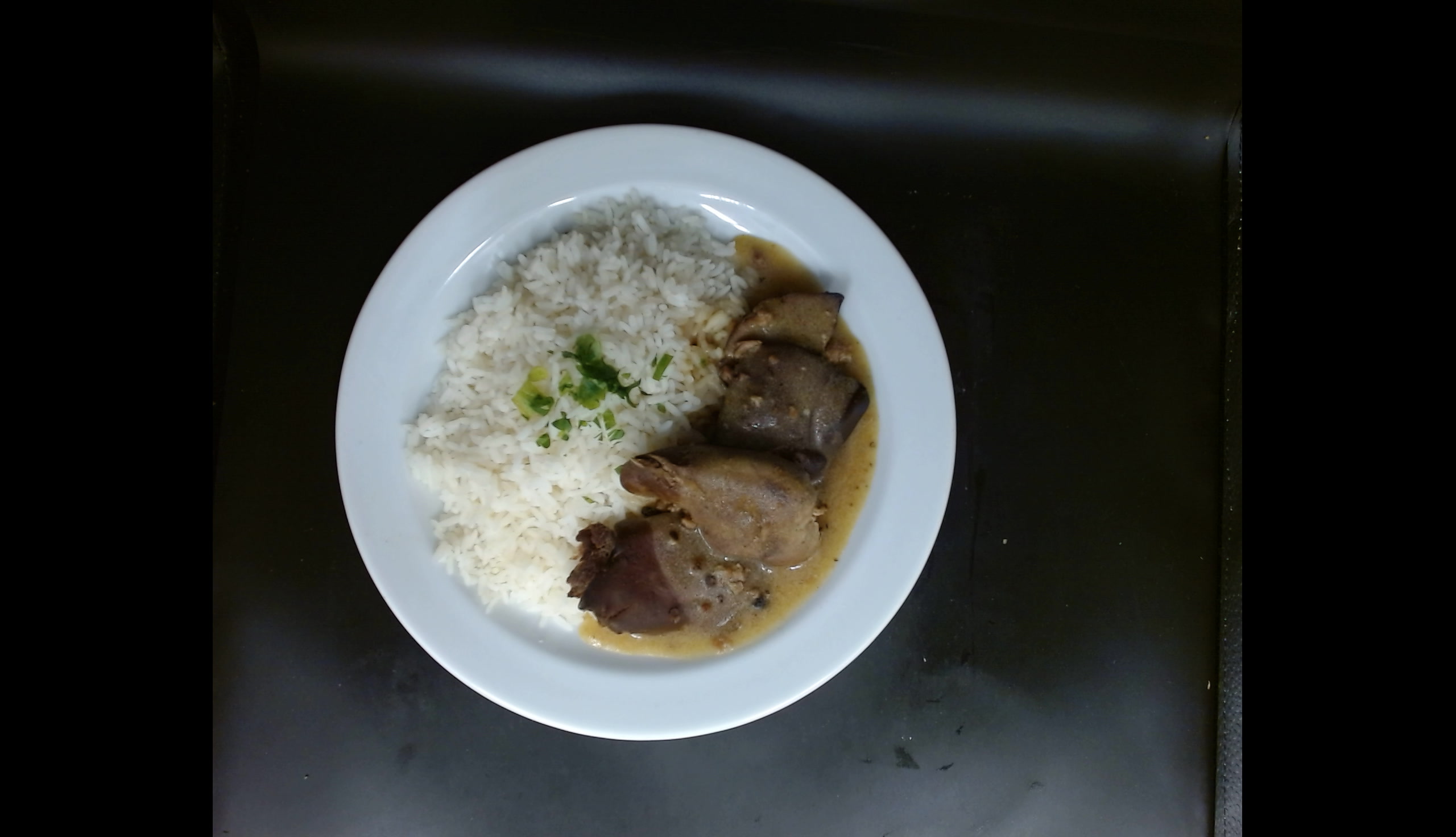 Kachní játra na slanině, dušená rýže