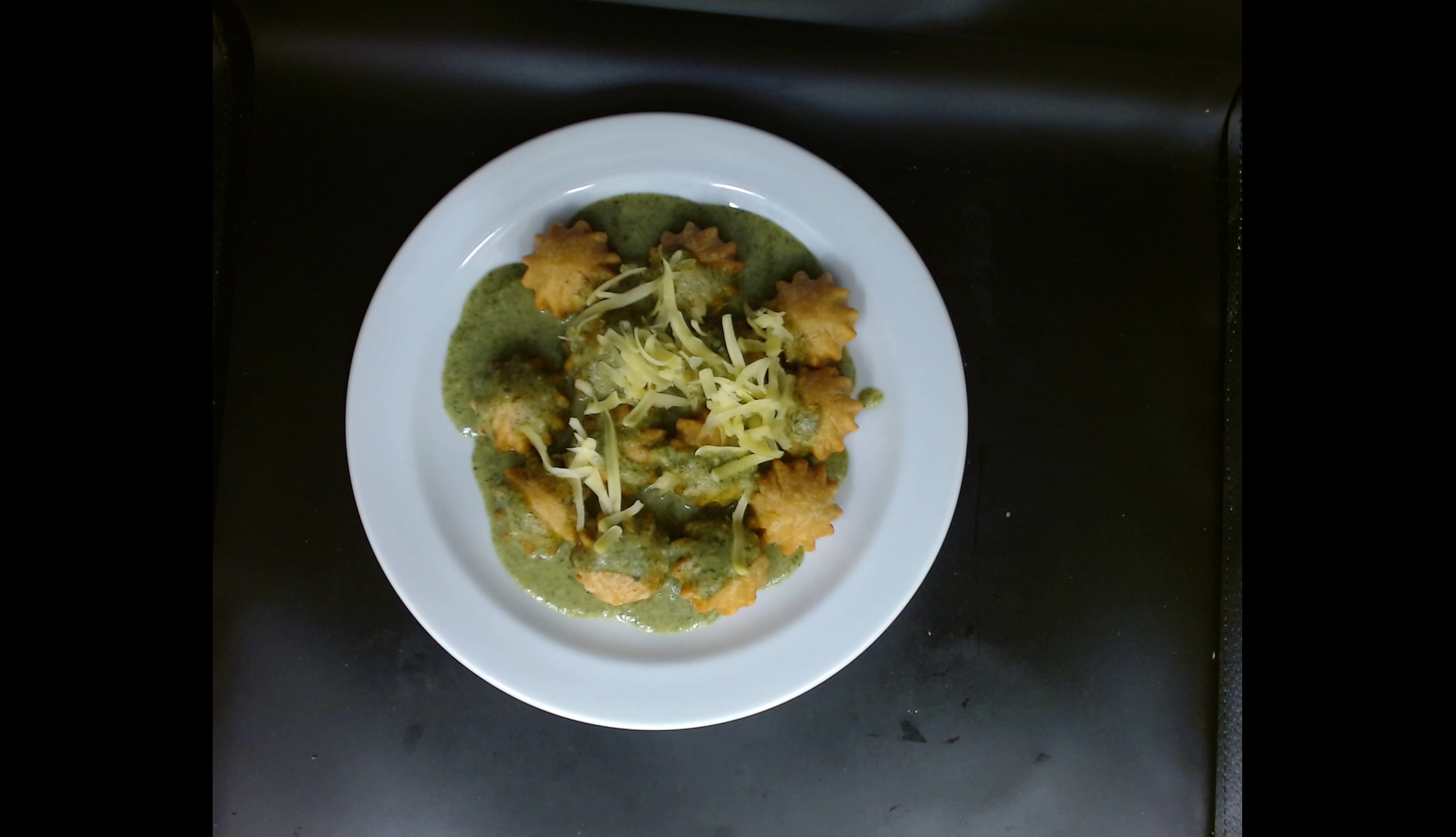 Cizrnové měšce se sýrem a špenátovým přelivem