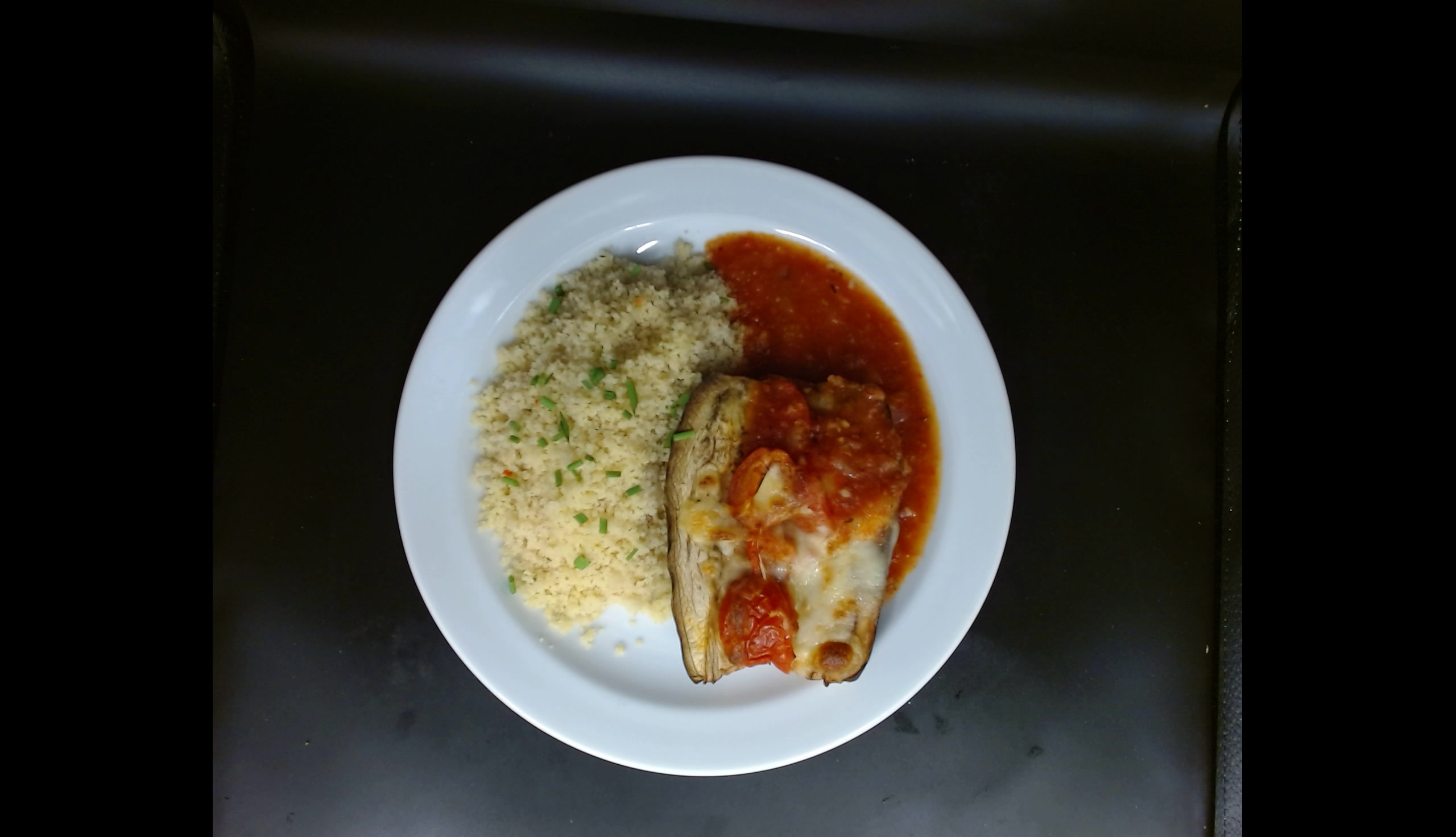 Zapečený lilek s mozzarellou a rajčaty, kuskus