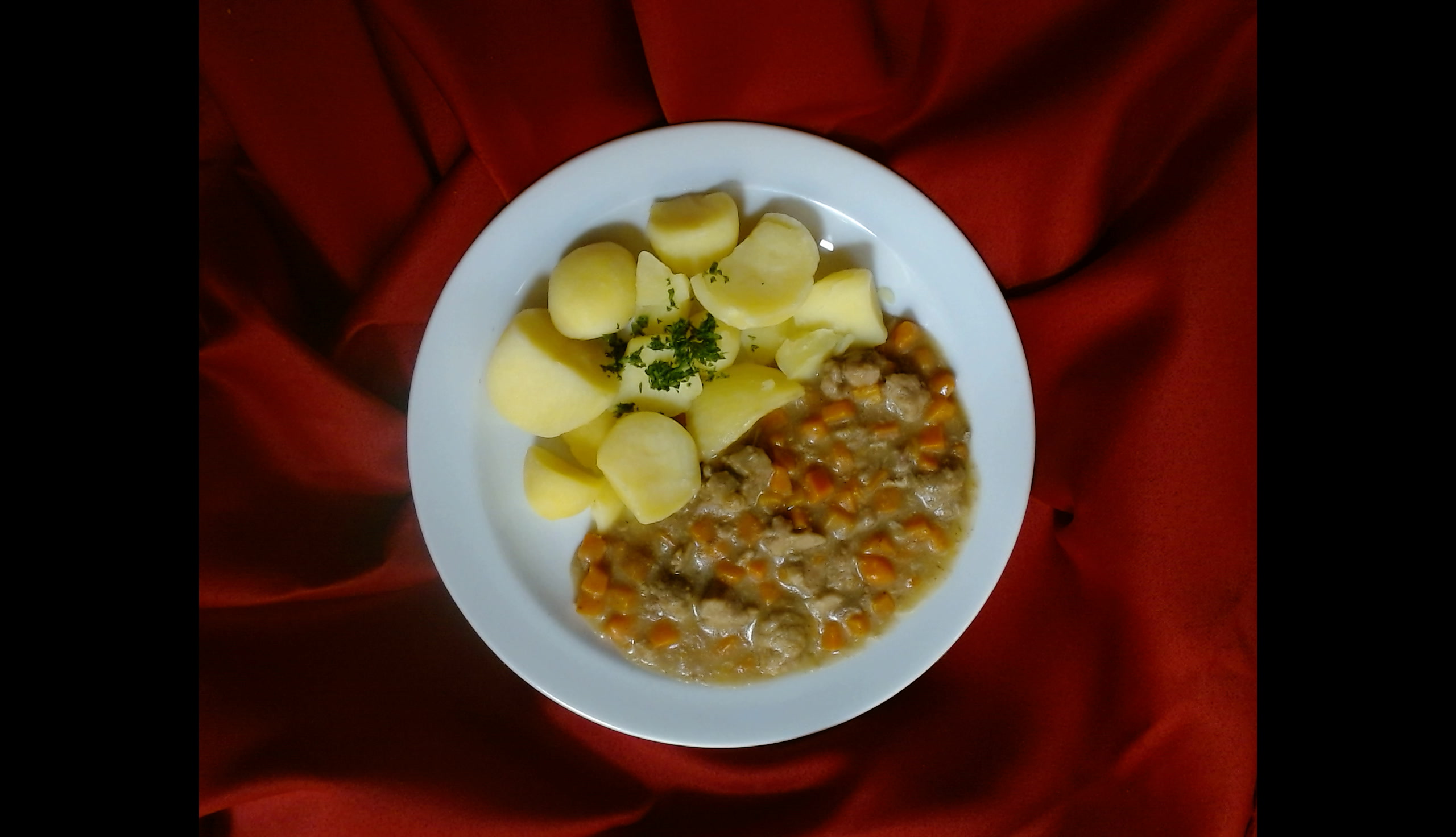 Vepřové maso v mrkvi, vařené brambory