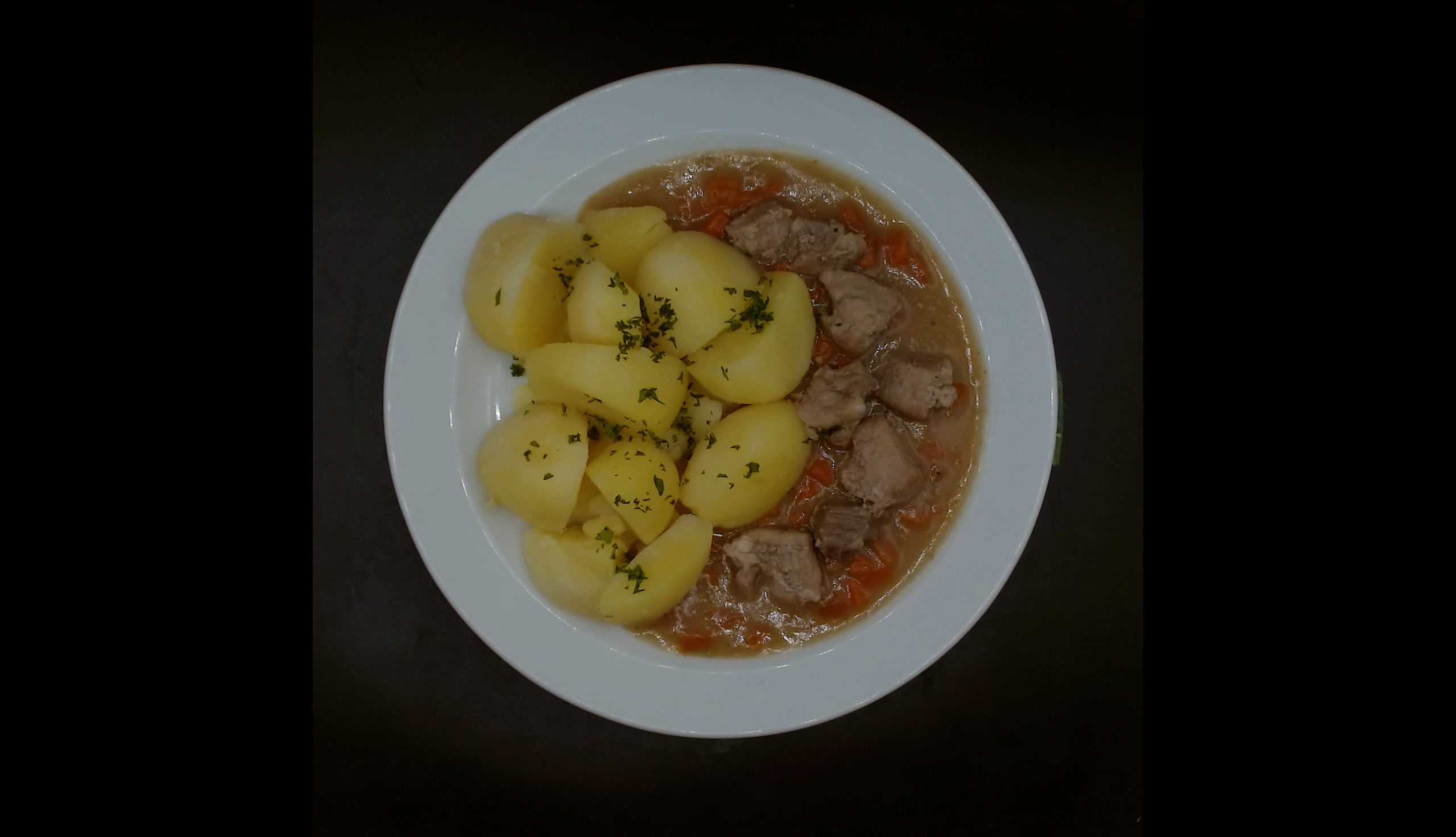 Vepřové maso v mrkvi, vařené brambory