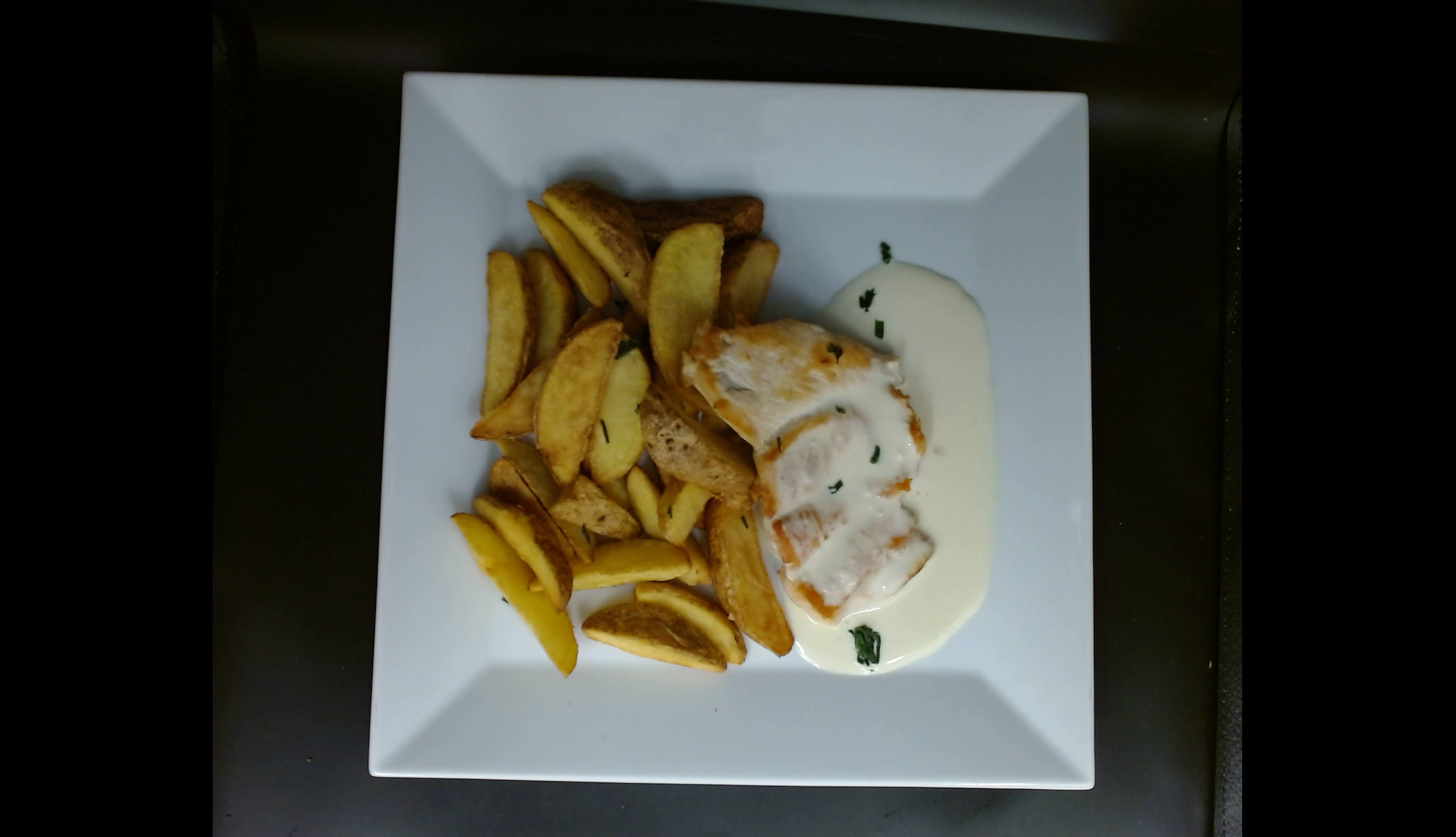Kuřecí steak s česnekovým přelivem,americké brambory