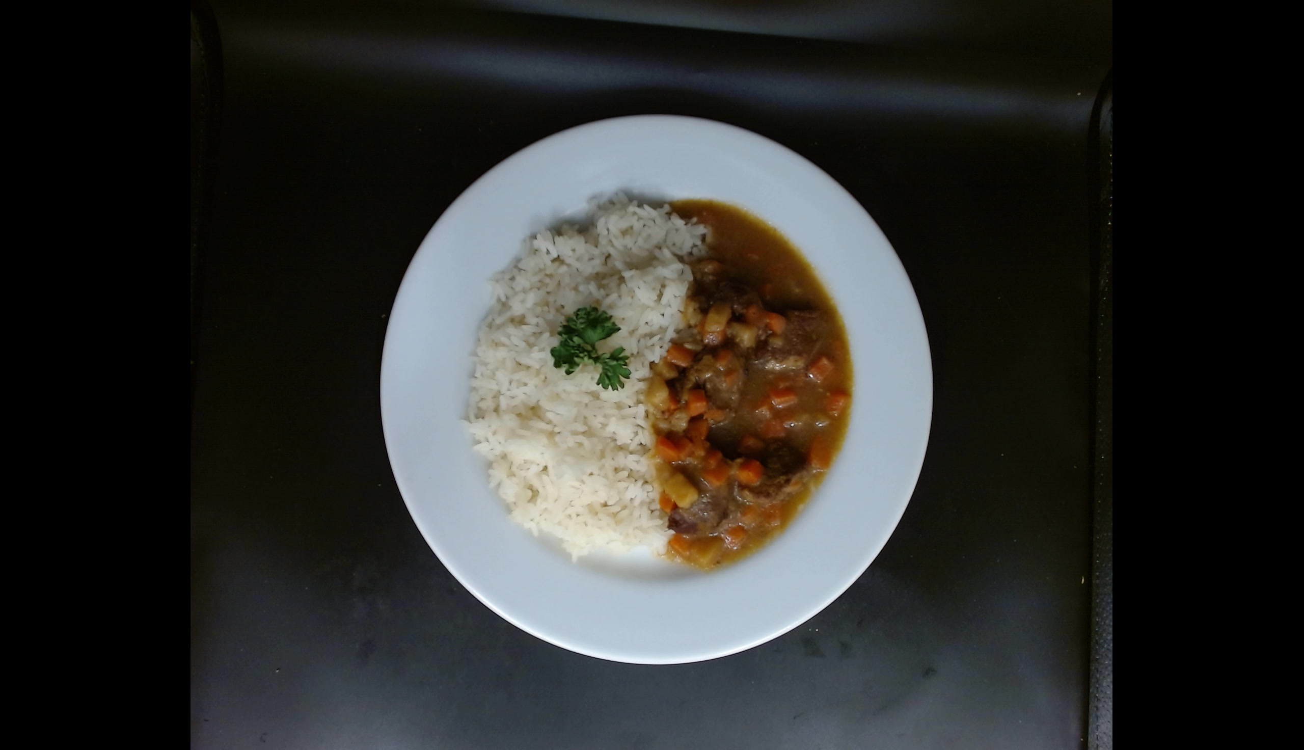 Vepřové kostky na kořenové zelenině,dušená rýže