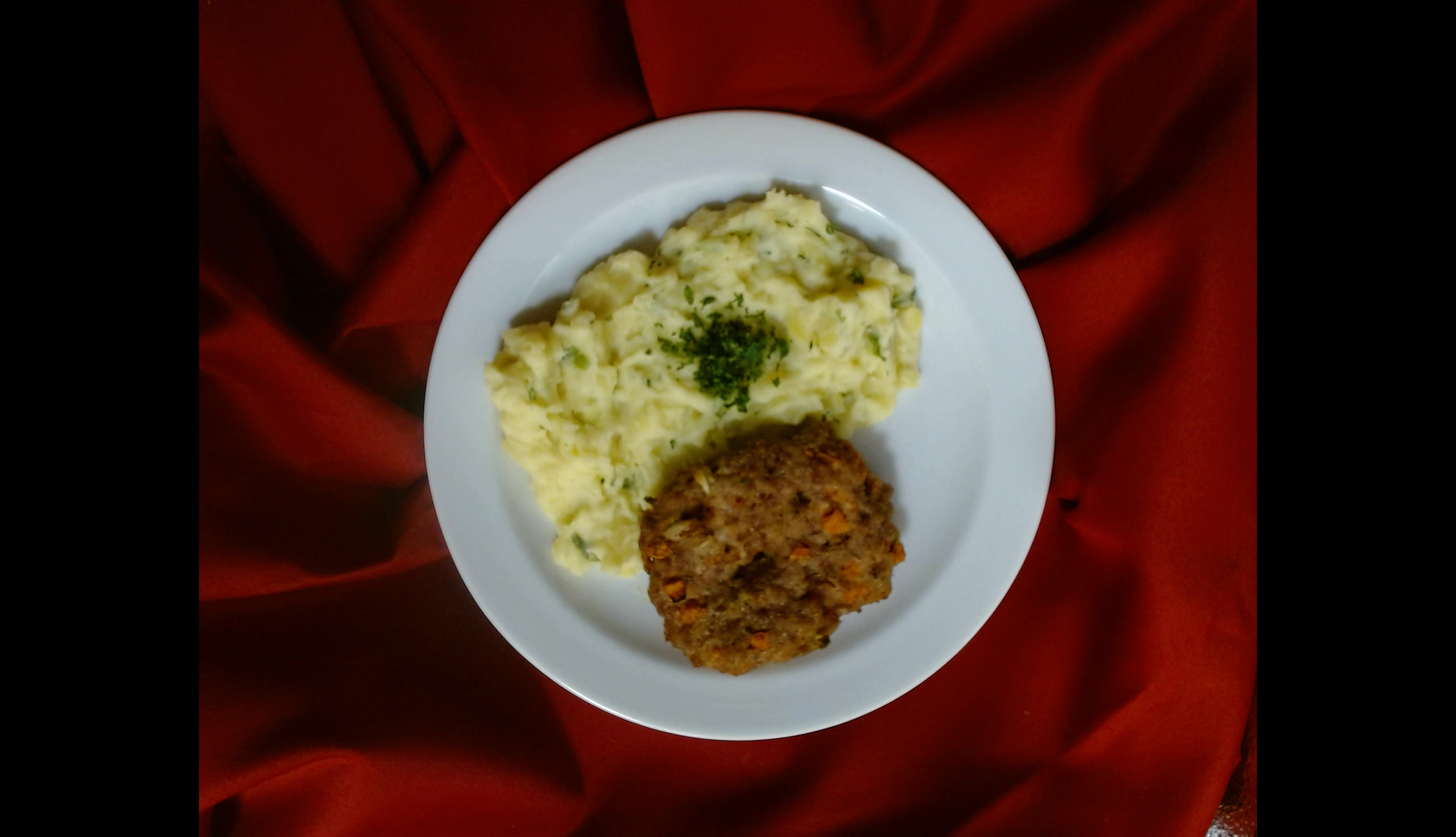 Pečený karbanátek se zeleninou, šťouchaný brambor
