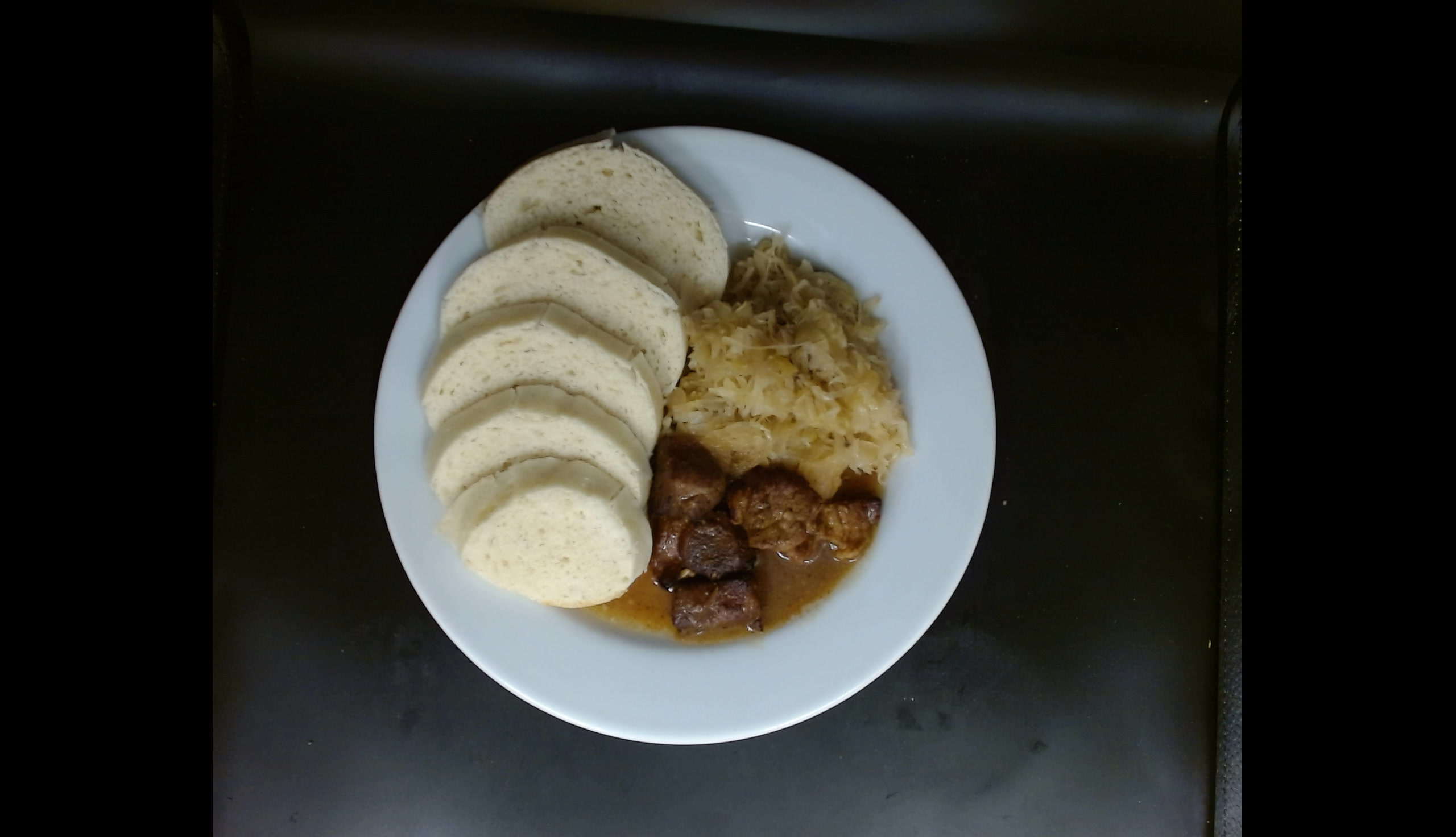 Vepřové výpečky, houskové knedlíky, dušené zelí