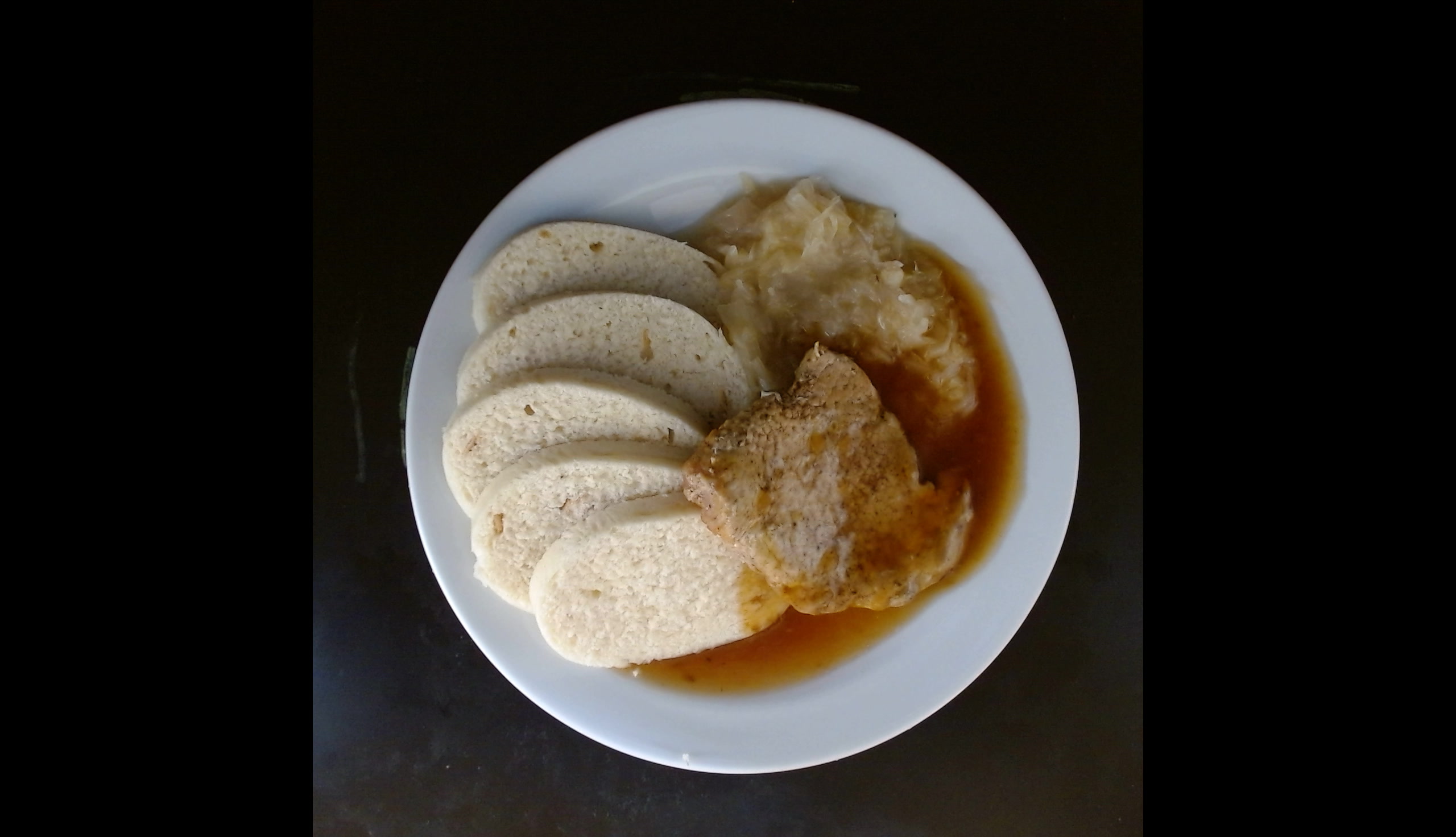 Vepřové výpečky, houskové knedlíky, dušené zelí