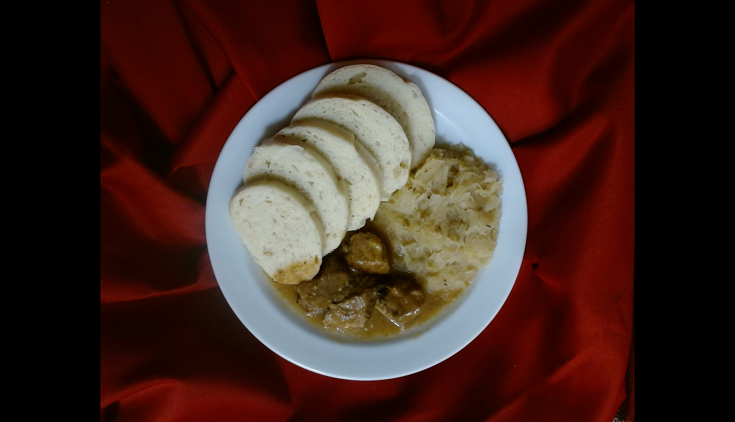 Vepřové výpečky, houskové knedlíky, dušené zelí