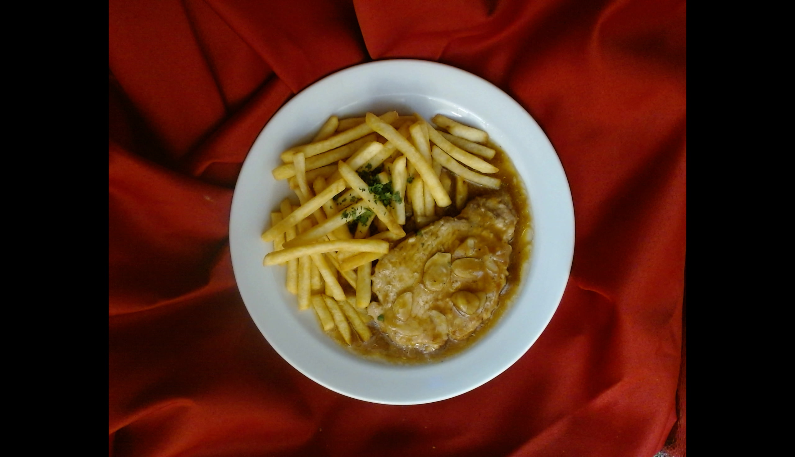 Vepřové žebírko na medu, hranolky