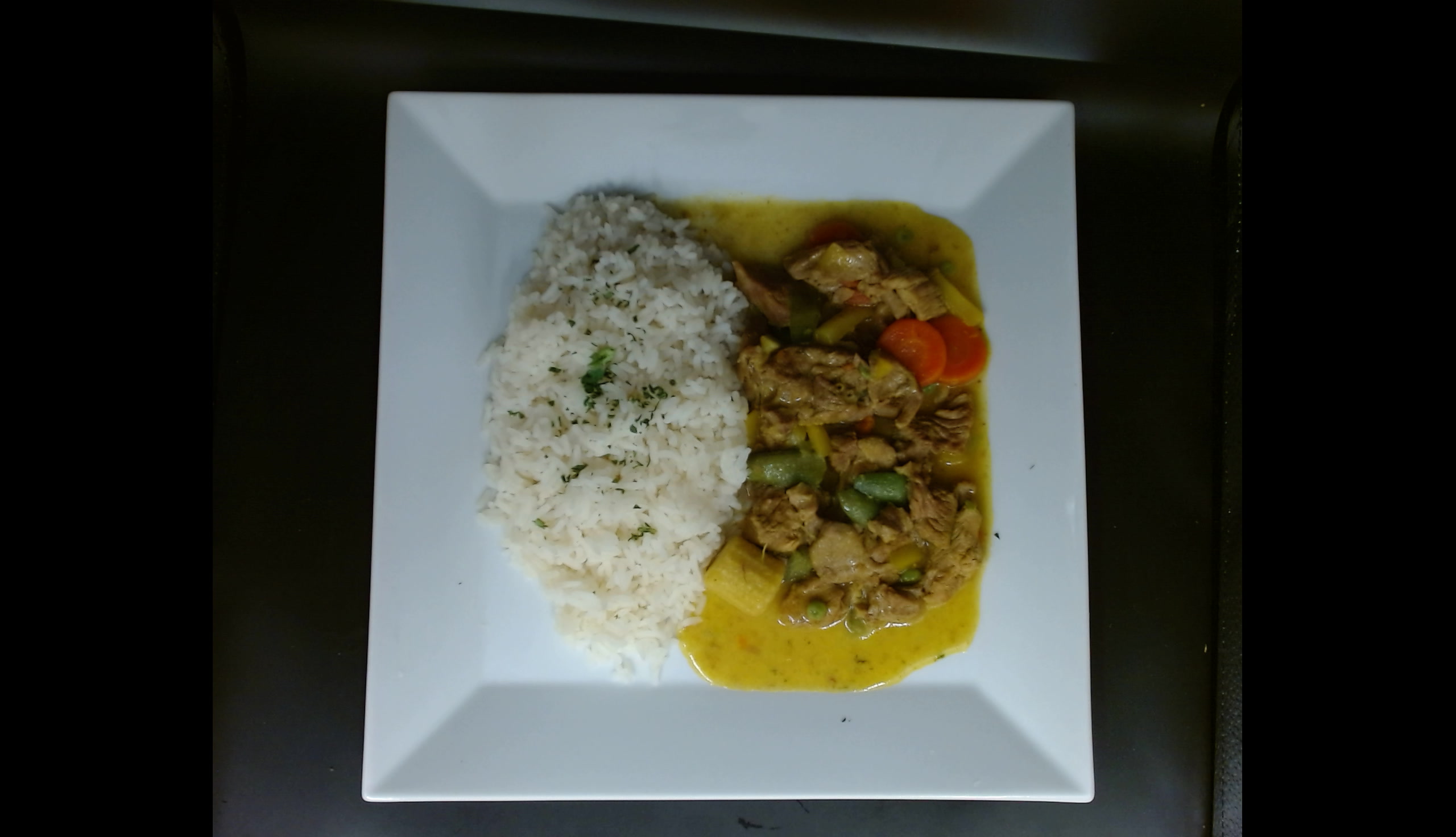 Krůtí nudličky na kari s kokosovým mlékem, dušená rýže