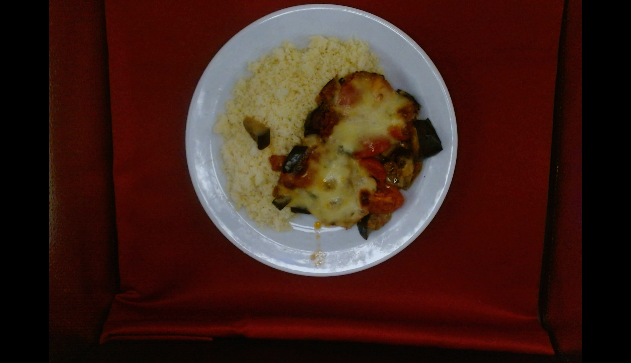 Zapečený lilek s mozzarellou a rajčaty, kuskus