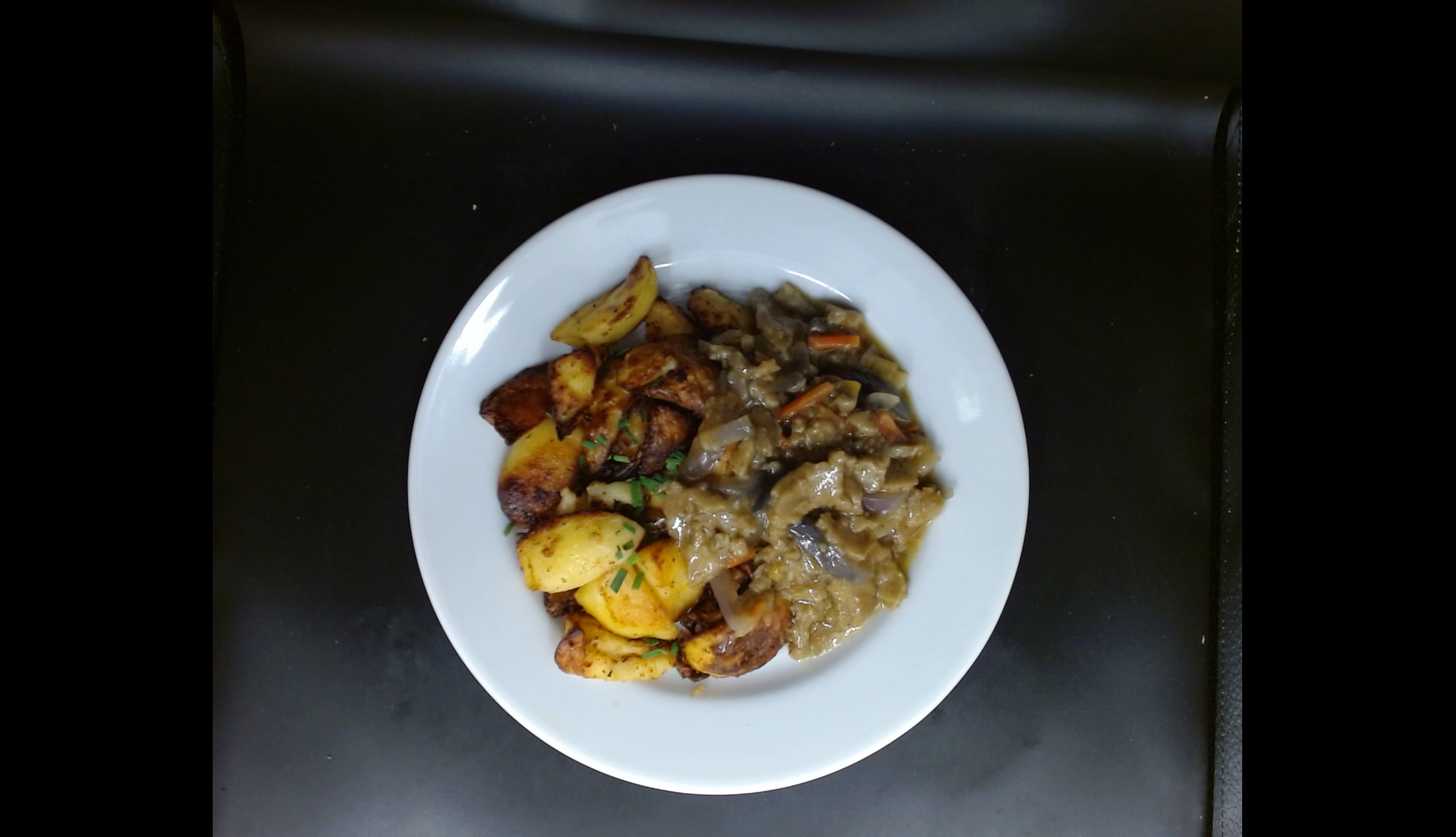 Robi nudličky po čínsku, opečené brambory