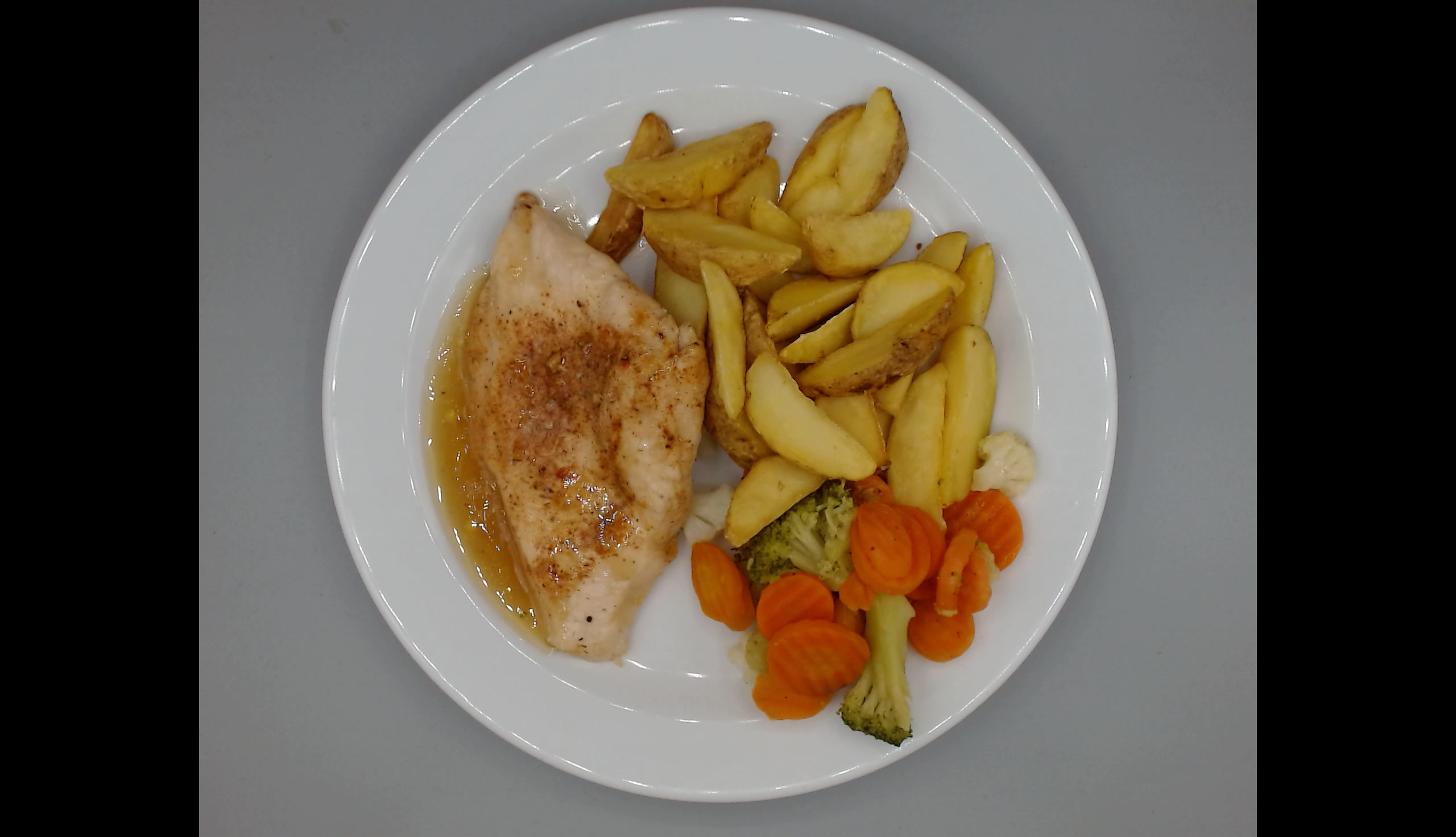 Kuřecí steak, bretaňská zelenina na másle, americké brambory