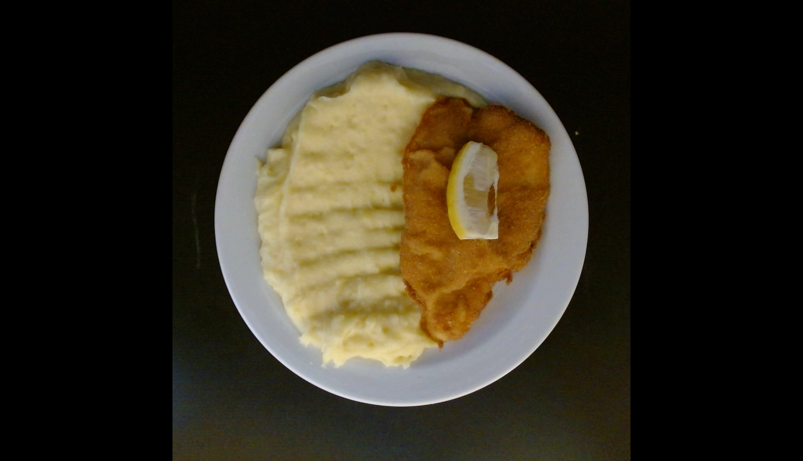 Smažený kuřecí řízek, bramborová kaše, citron