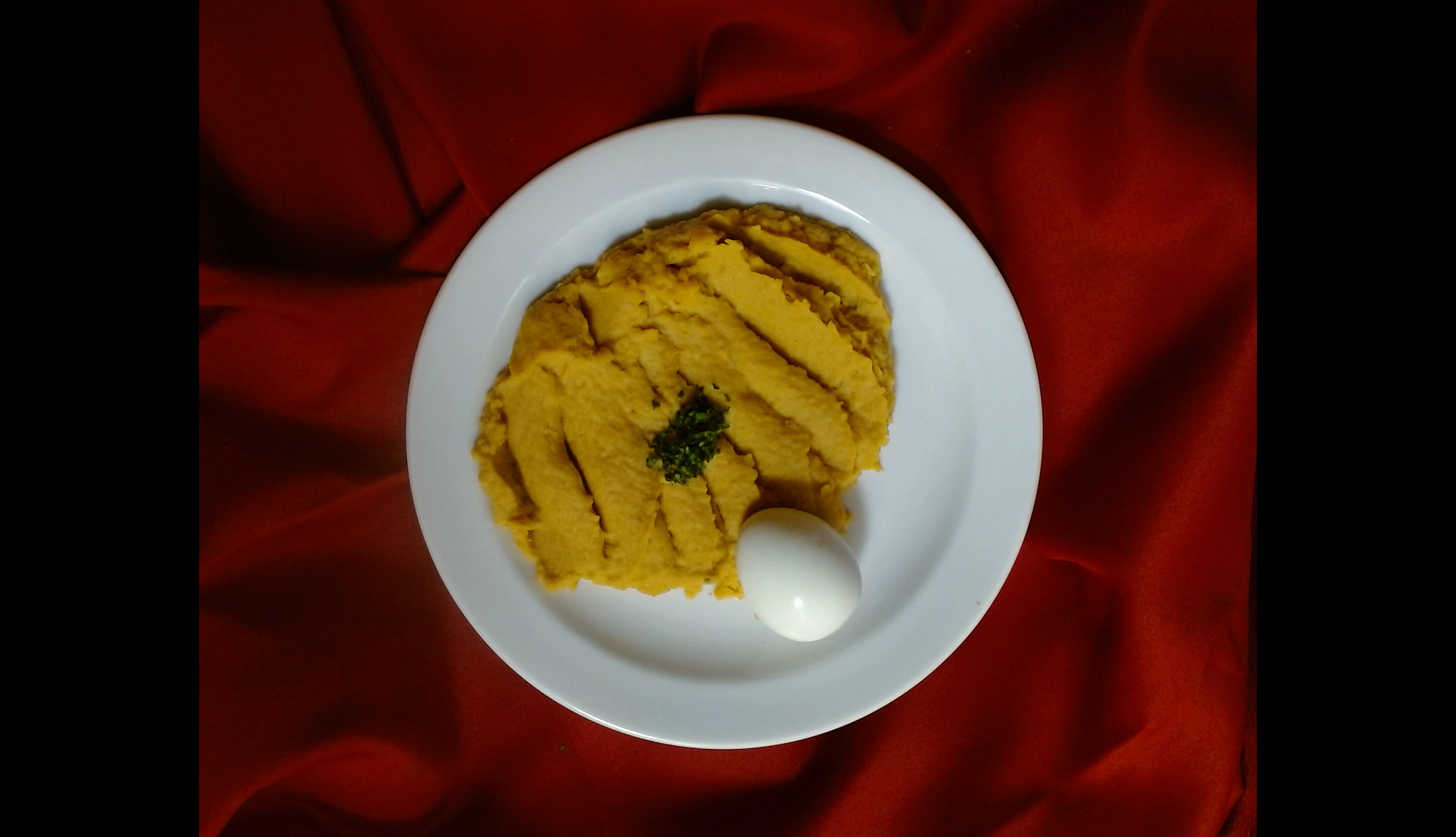 Cizrnová kaše se sušenými rajčaty a vařeným vejcem