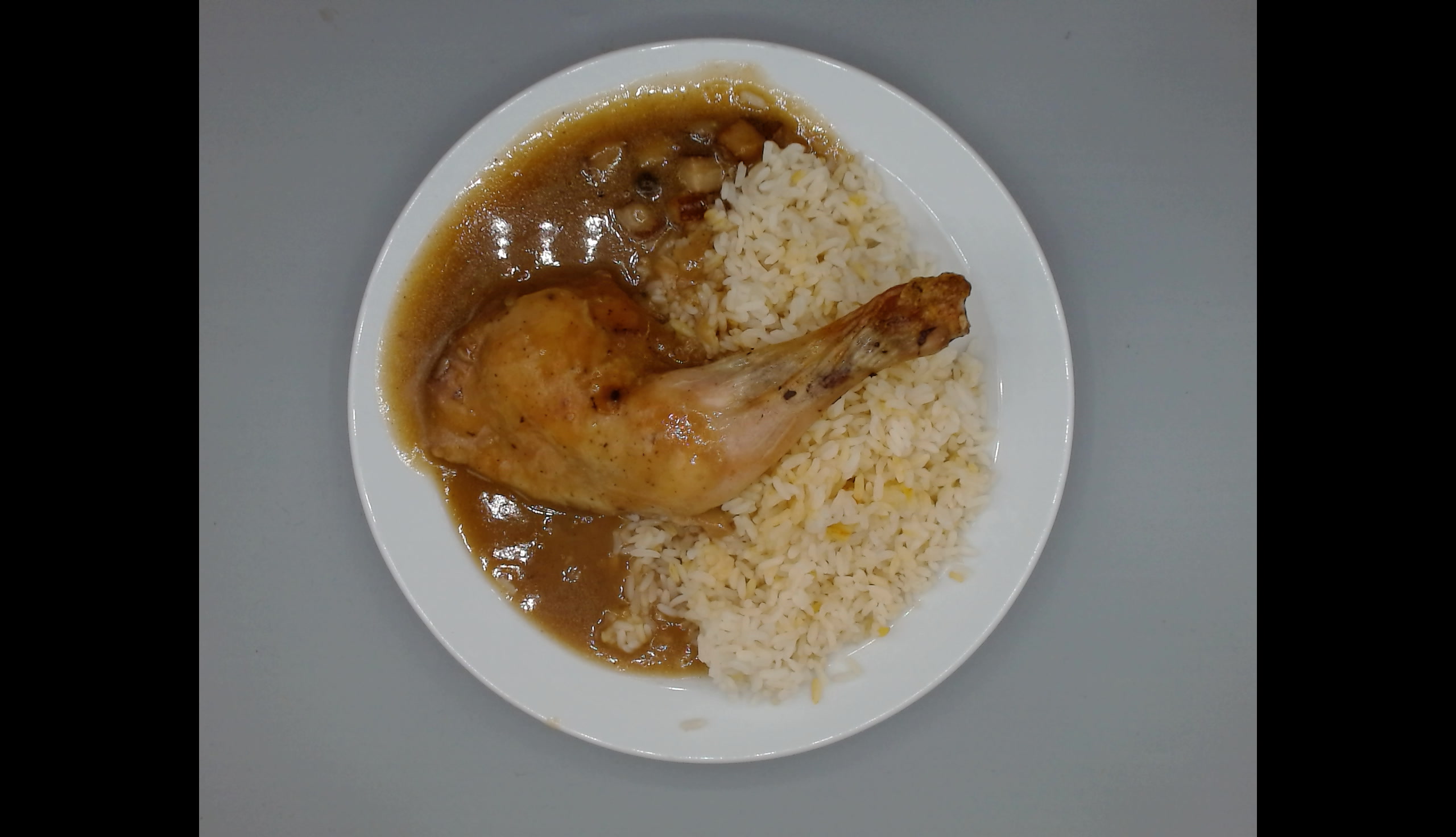 Pečené kuřecí stehno ala bažant,dušená rýže