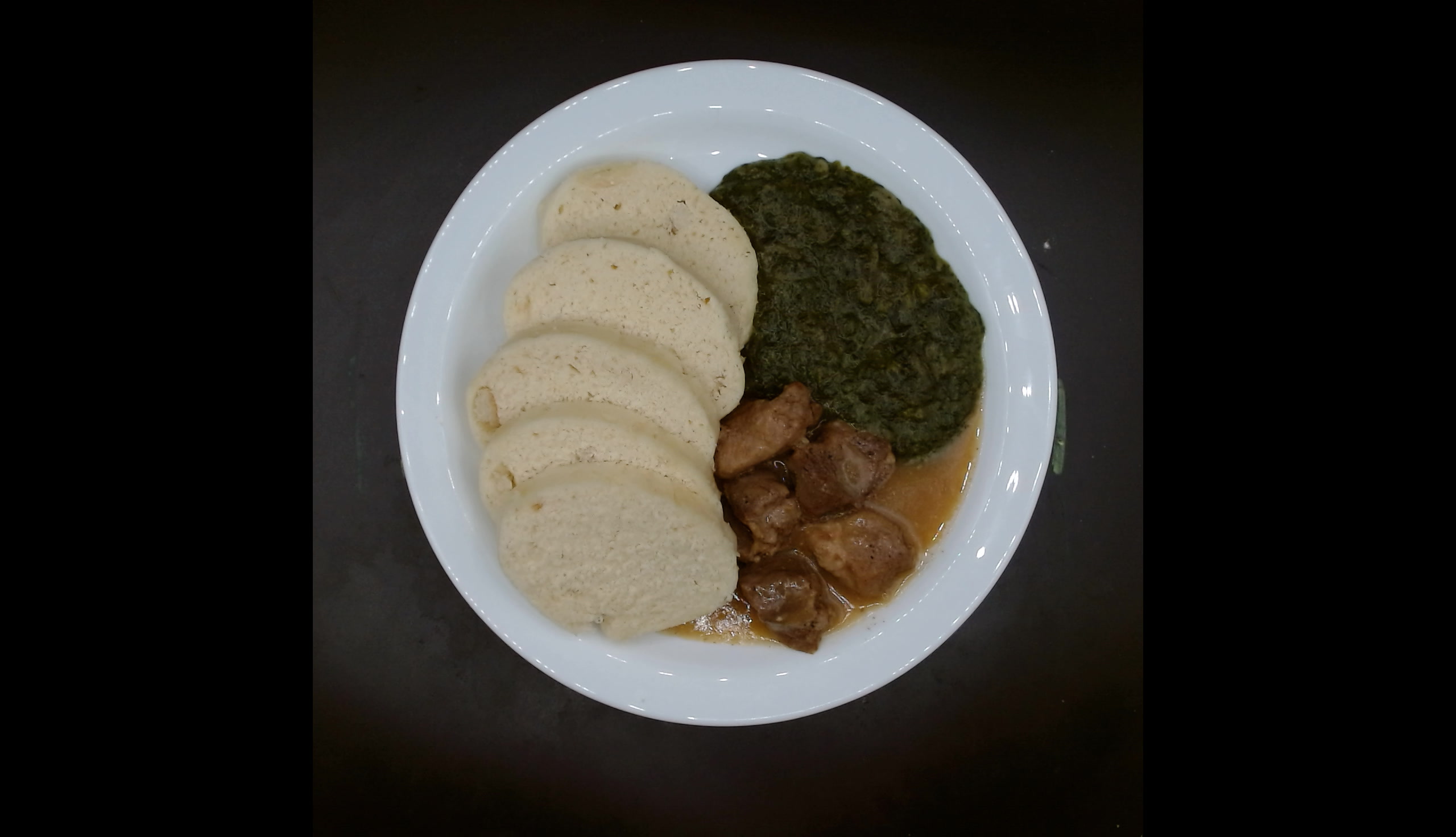 Vepřové maso na česneku, houskové knedlíky, špenát