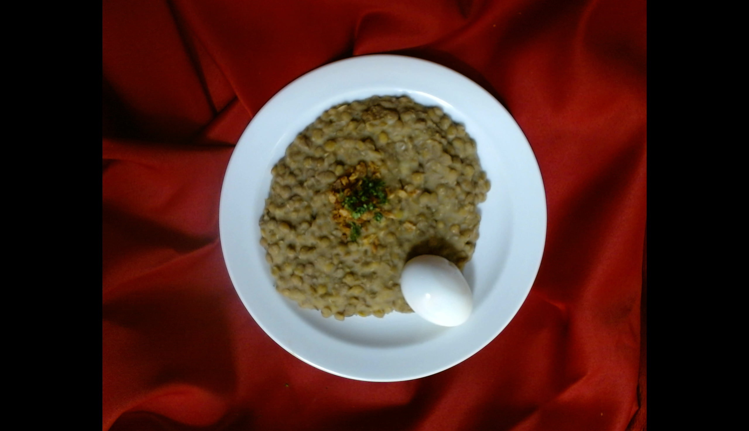 Čočka na kyselo s cibulkou, vařené vejce