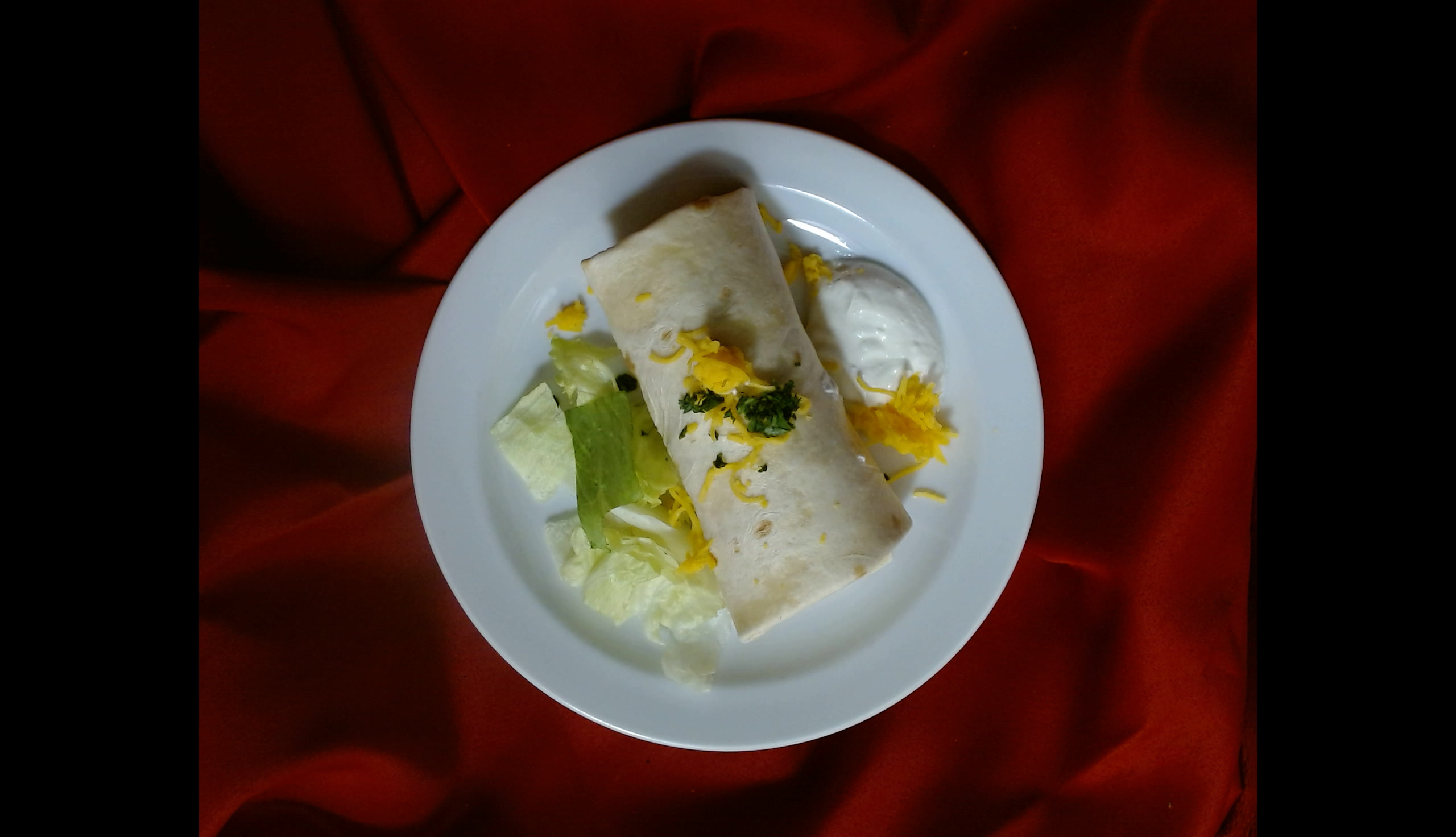 Tortilla s kuřecím masem na ledovém salátu se zakysanou smetanou
