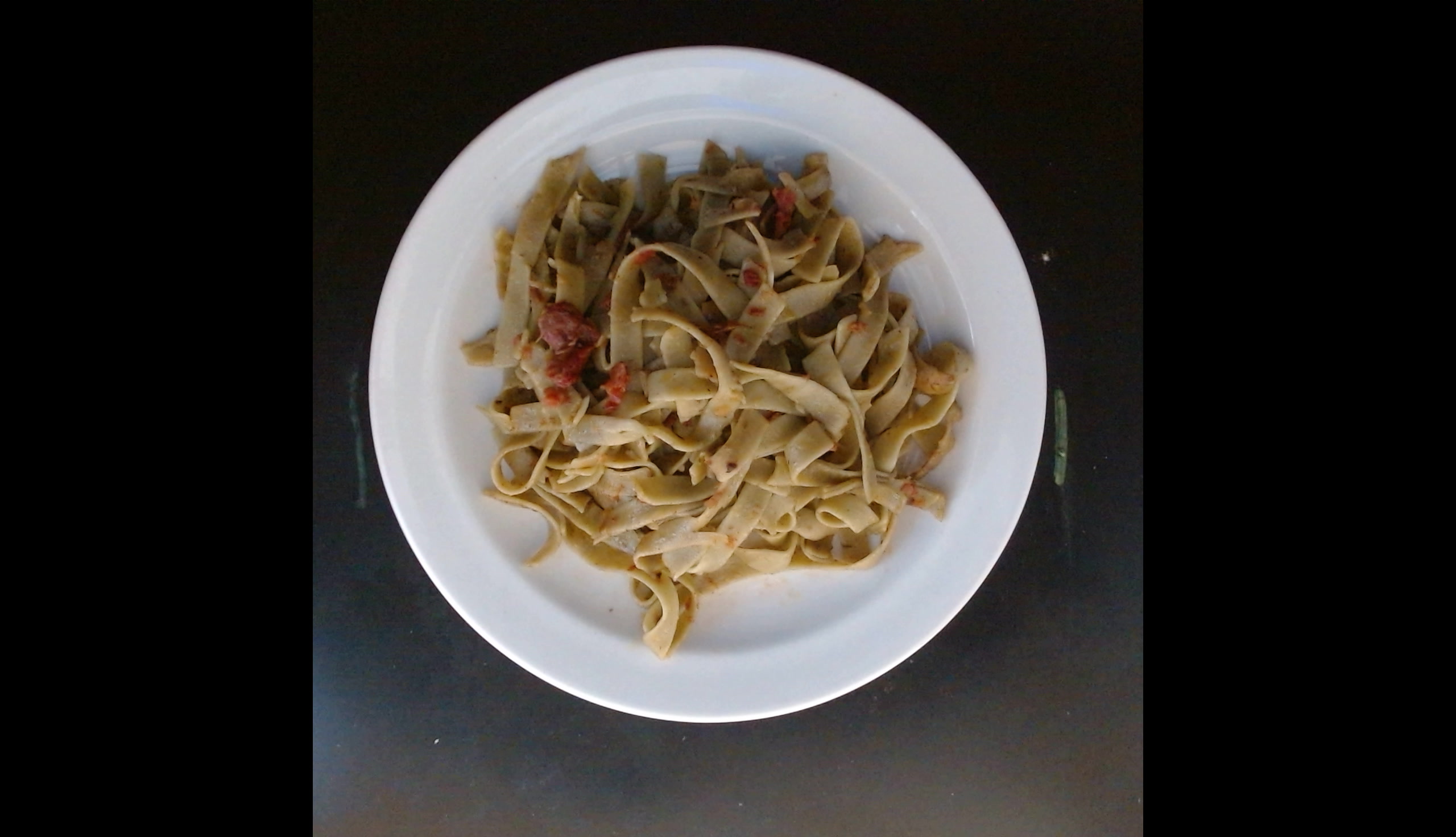 Tagliatelle se sušenými rajčaty a bazalkovým pestem