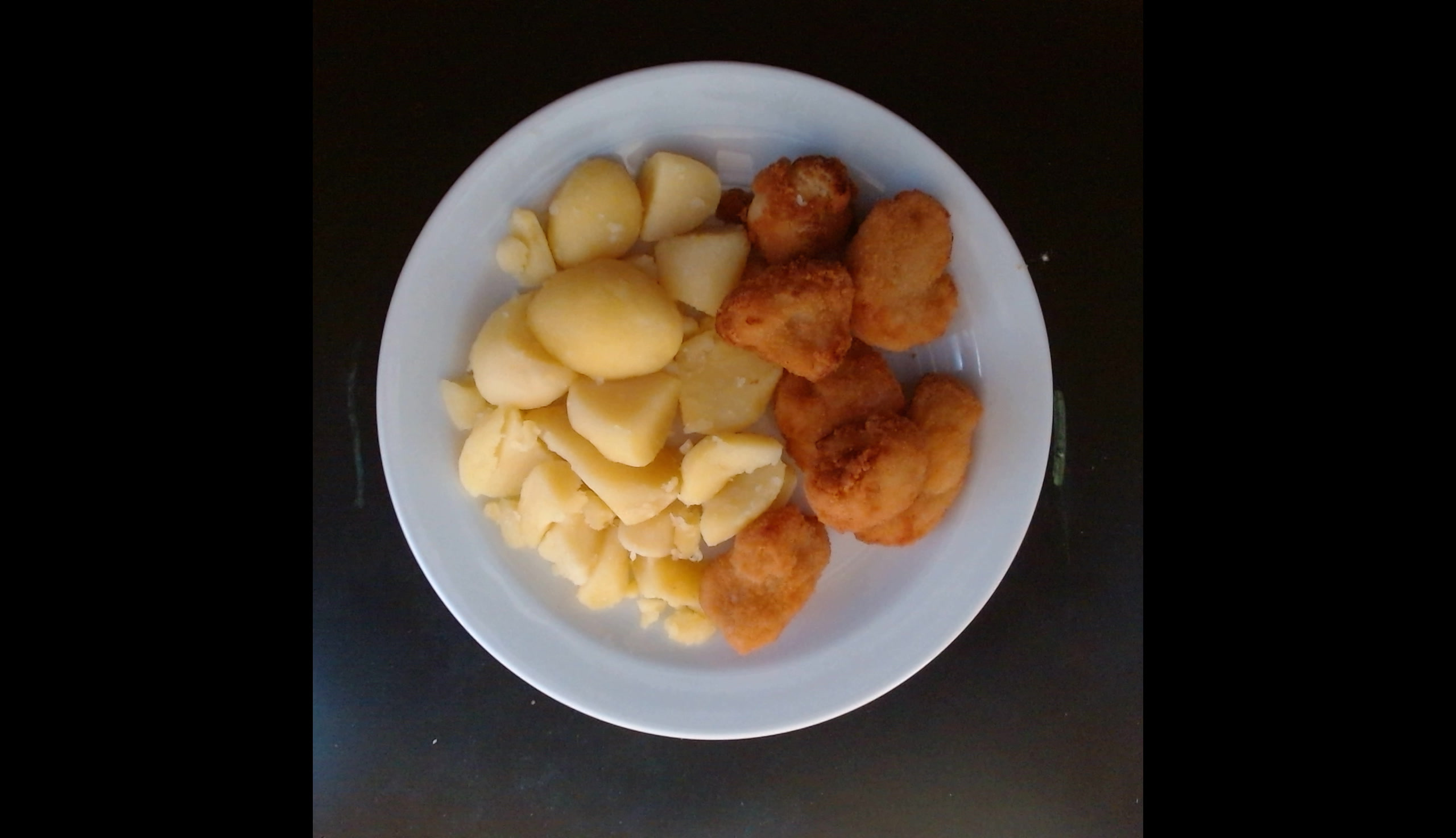 Květákové placičky se sýrem, vařené brambory, tatarská omáčka