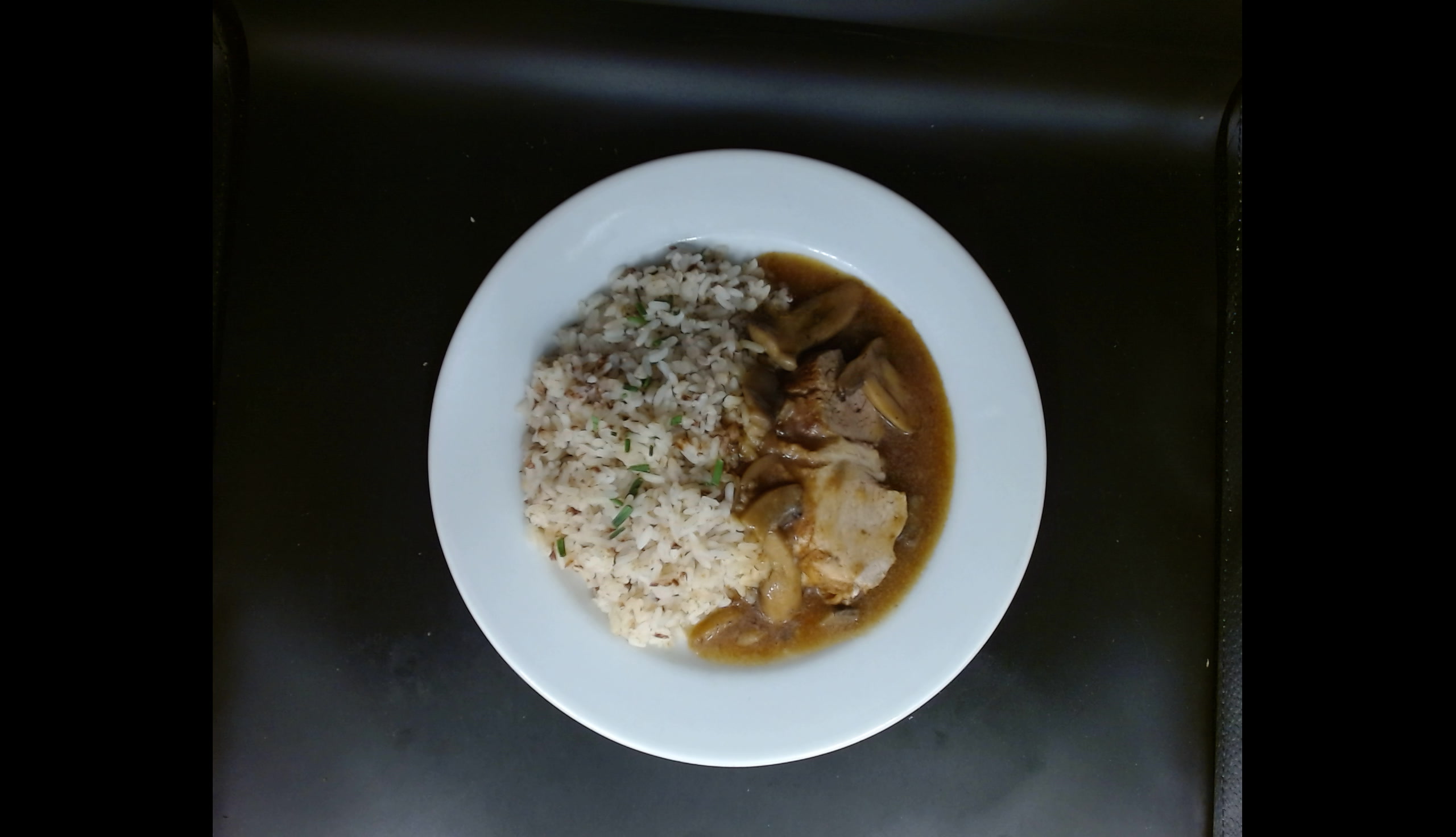 Vepřový plátek na houbách, rýže s pohankou