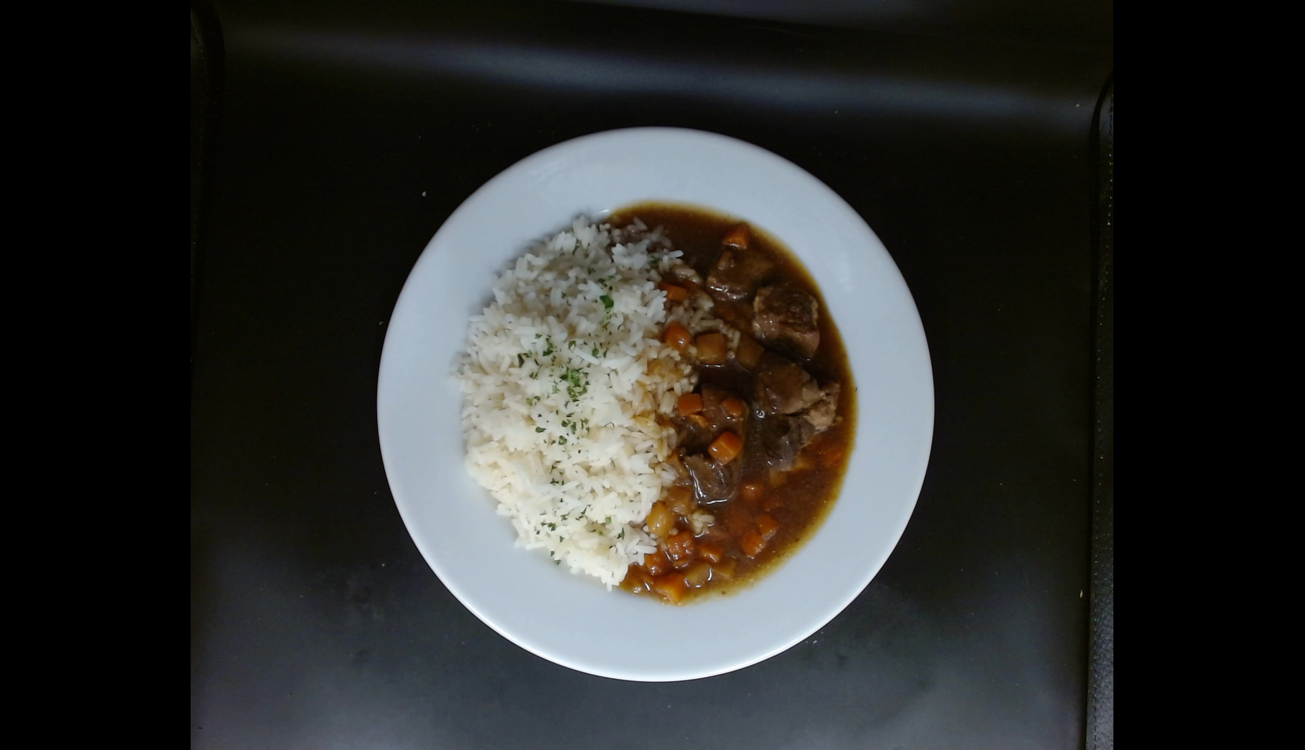 Vepřové kostky na kořenové zelenině,dušená rýže