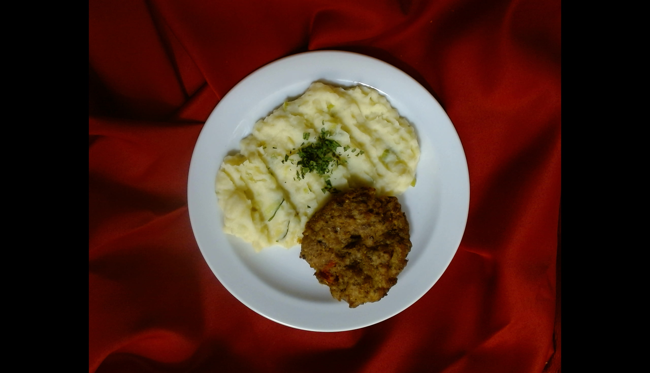 Pečený karbanátek se zeleninou, šťouchaný brambor