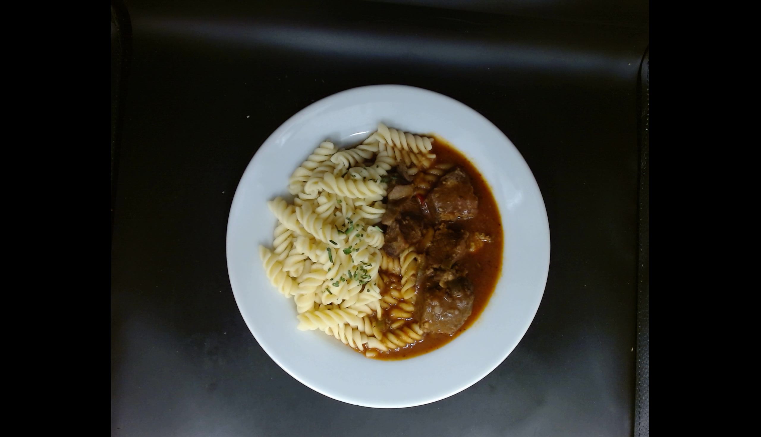 Vepřový guláš pikantní, těstoviny