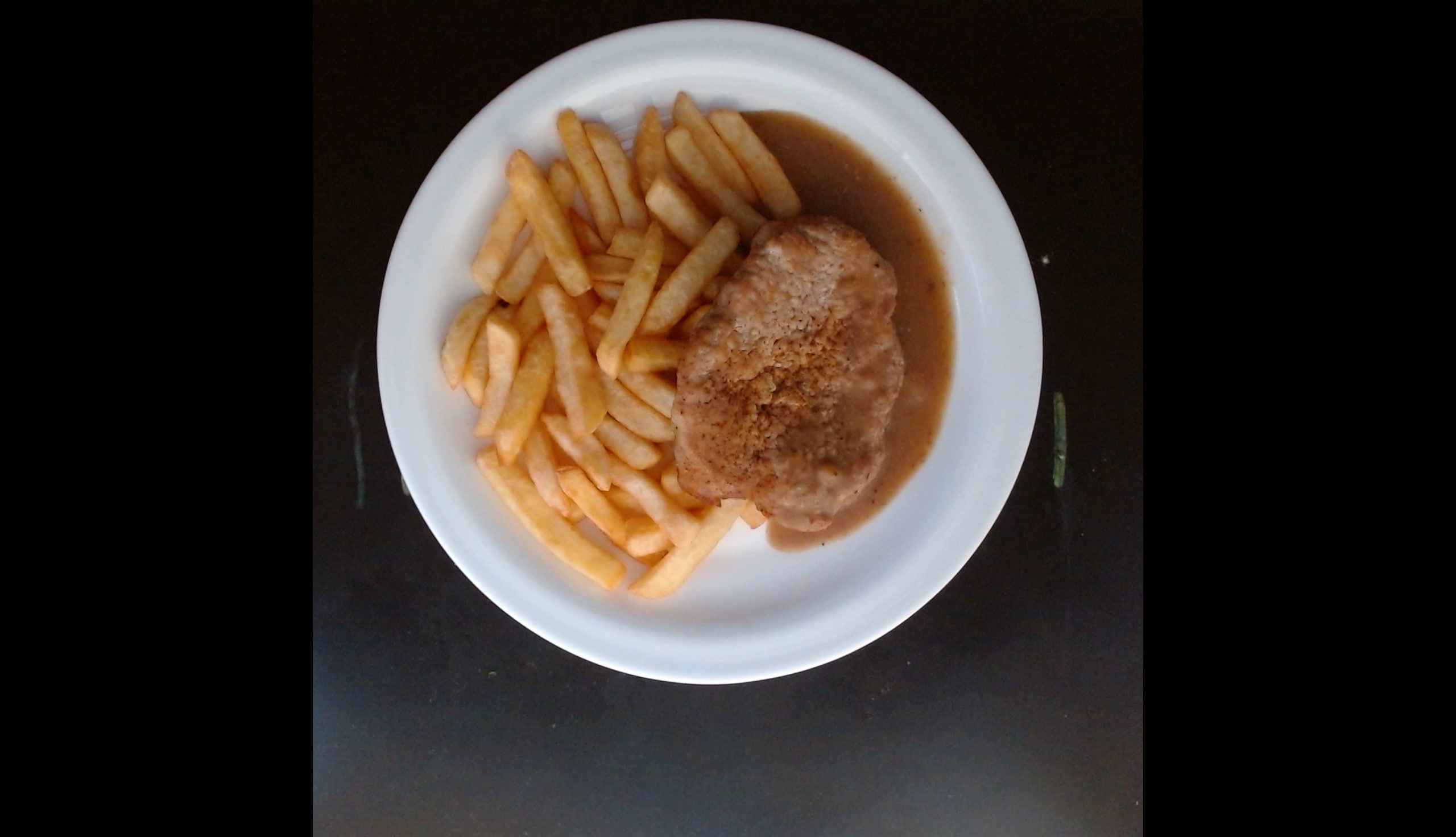 Vepřová kotleta s hořčičnou omáčkou, hranolky