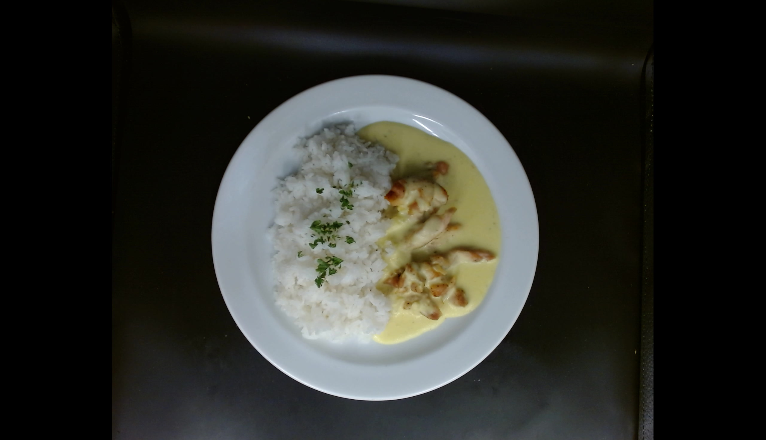 Kuřecí maso v sýrové omáčce , basmati rýže