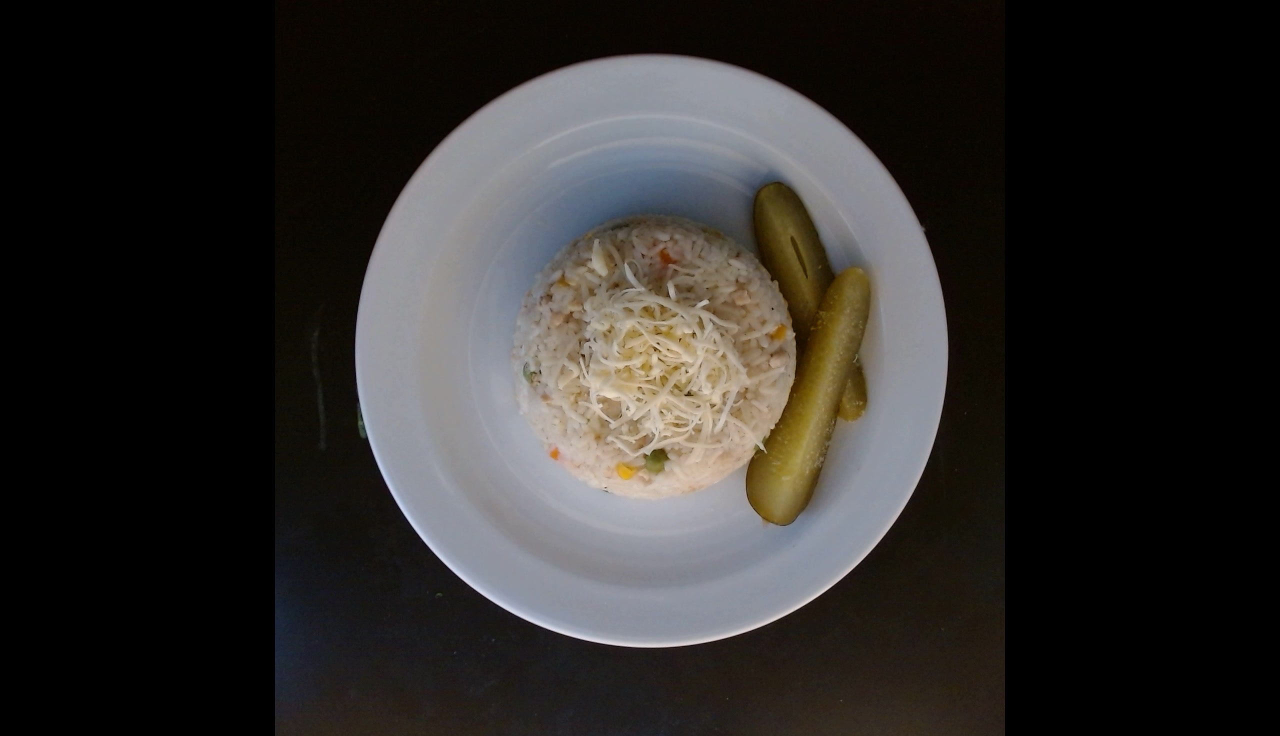 Rizoto z kuřecího masa, okurka, sýr