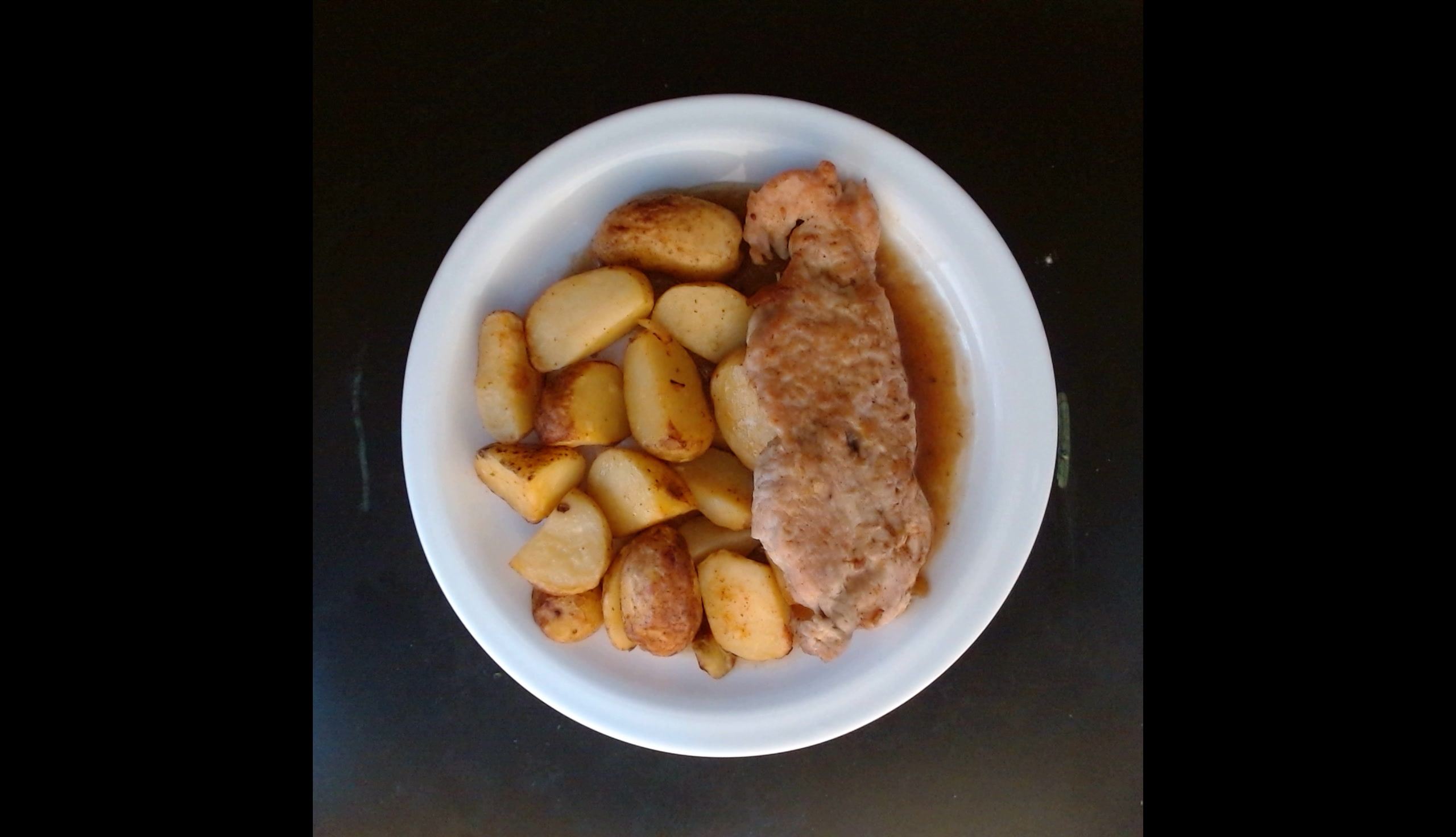 Krůtí steak s cibulovou šťávou, americké brambory