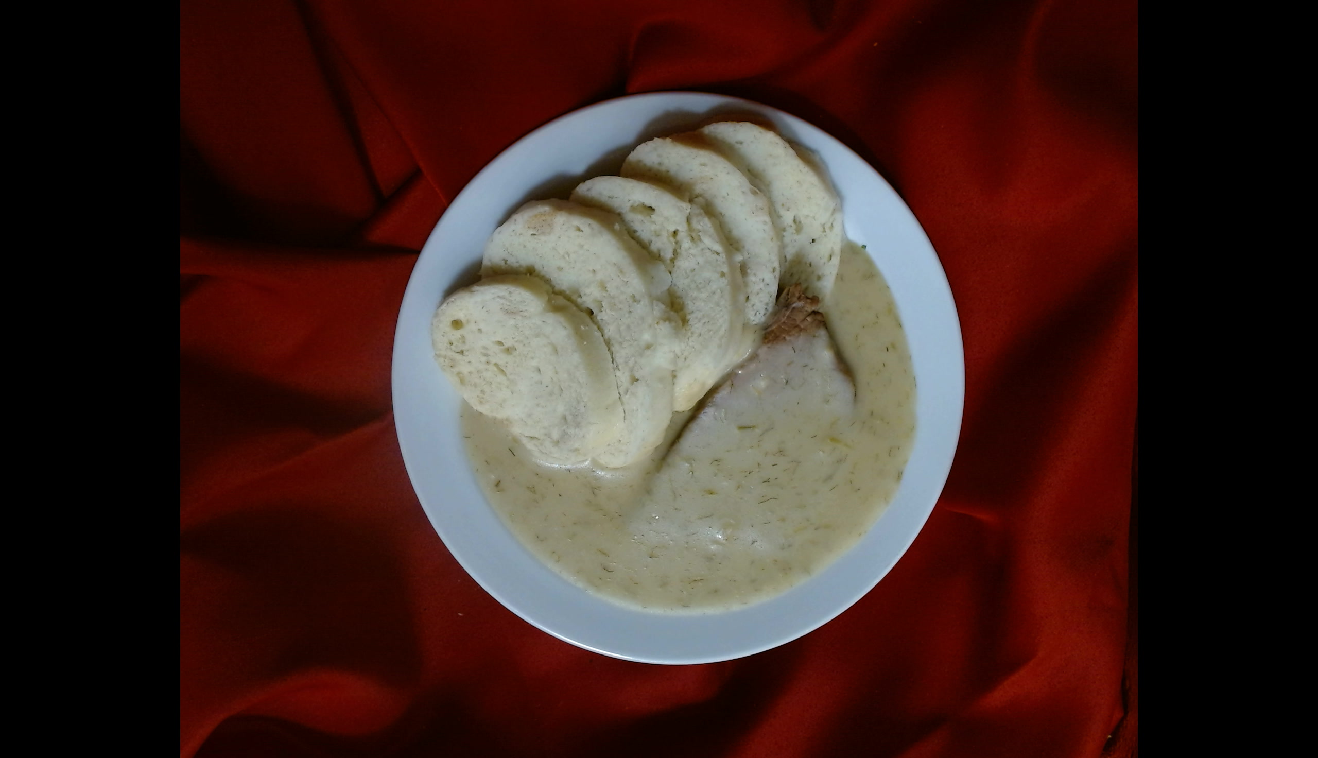 Hovězí maso s koprovou omáčkou a houskovým knedlíkem