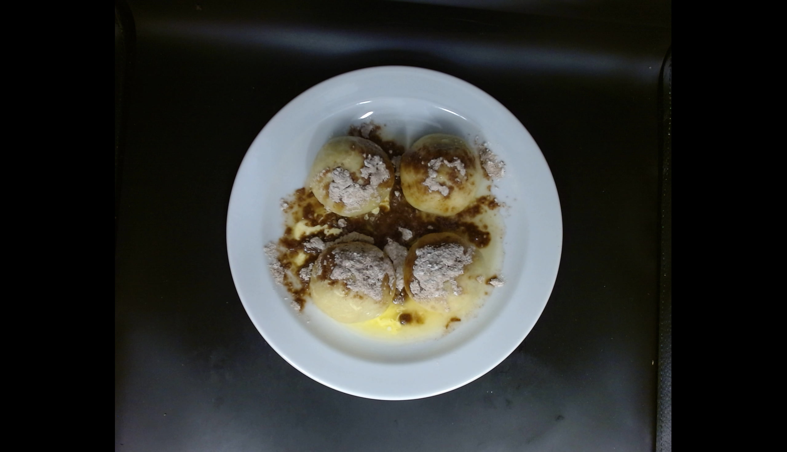Bramborové knedlíky plněné celou švestkou se skořicí a cukrem