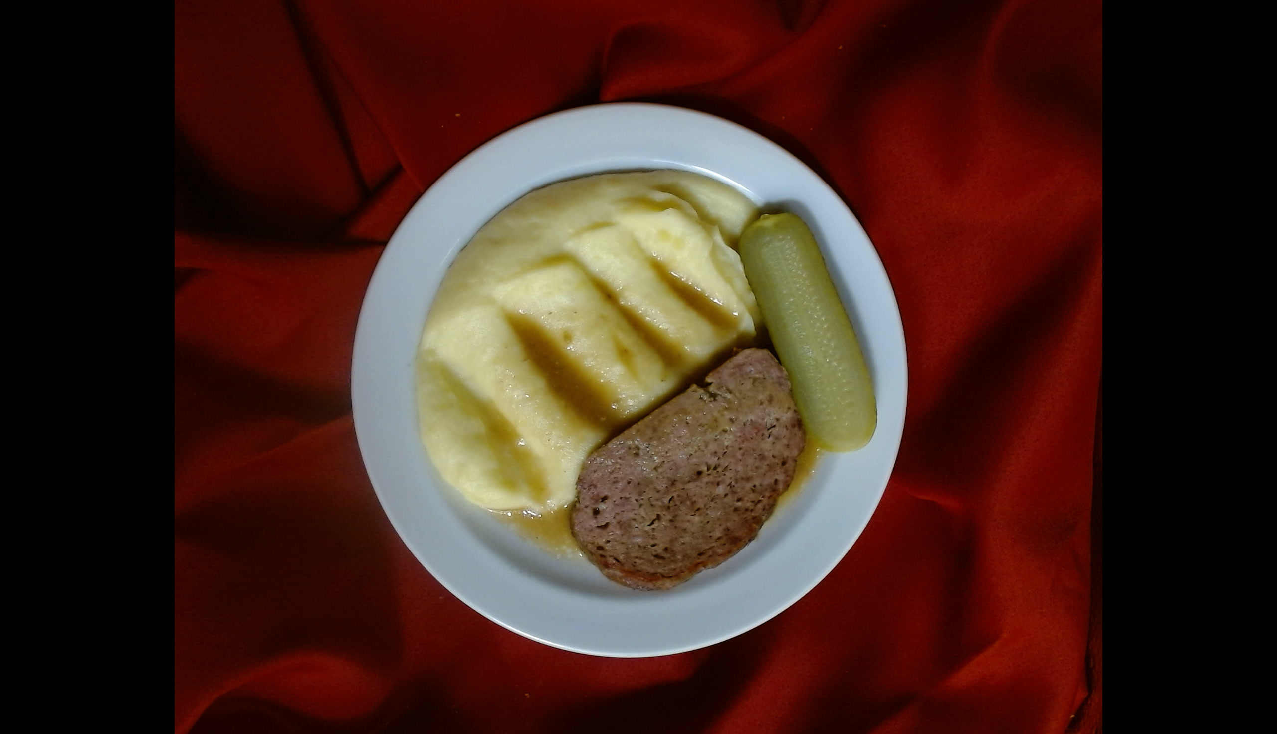 Domácí pečená sekaná, bramborová kaše, okurka